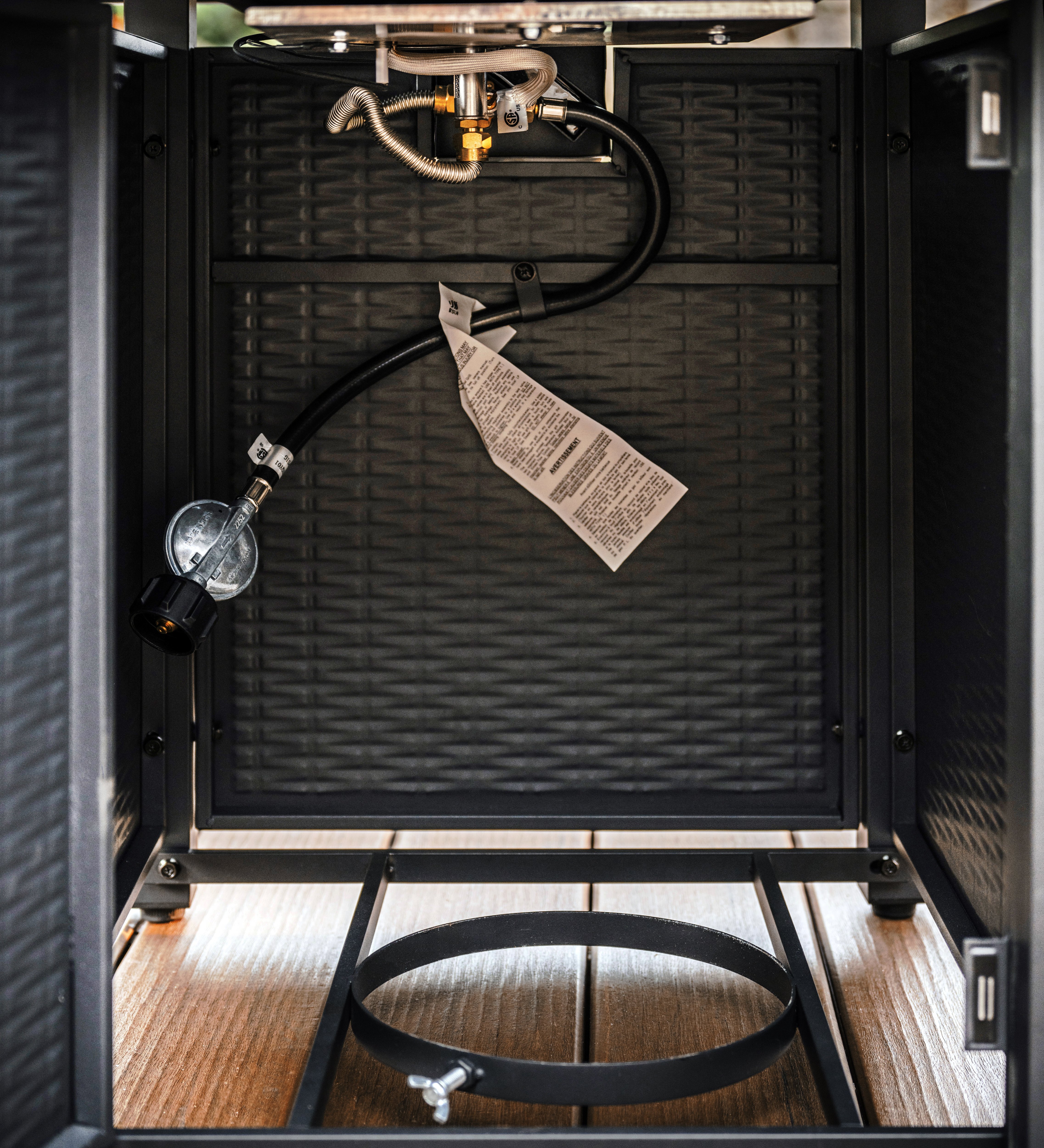 •Galvanized steel construction •Durable polyrattan wicker •Steel center cover •Back access door with magnetic latch •