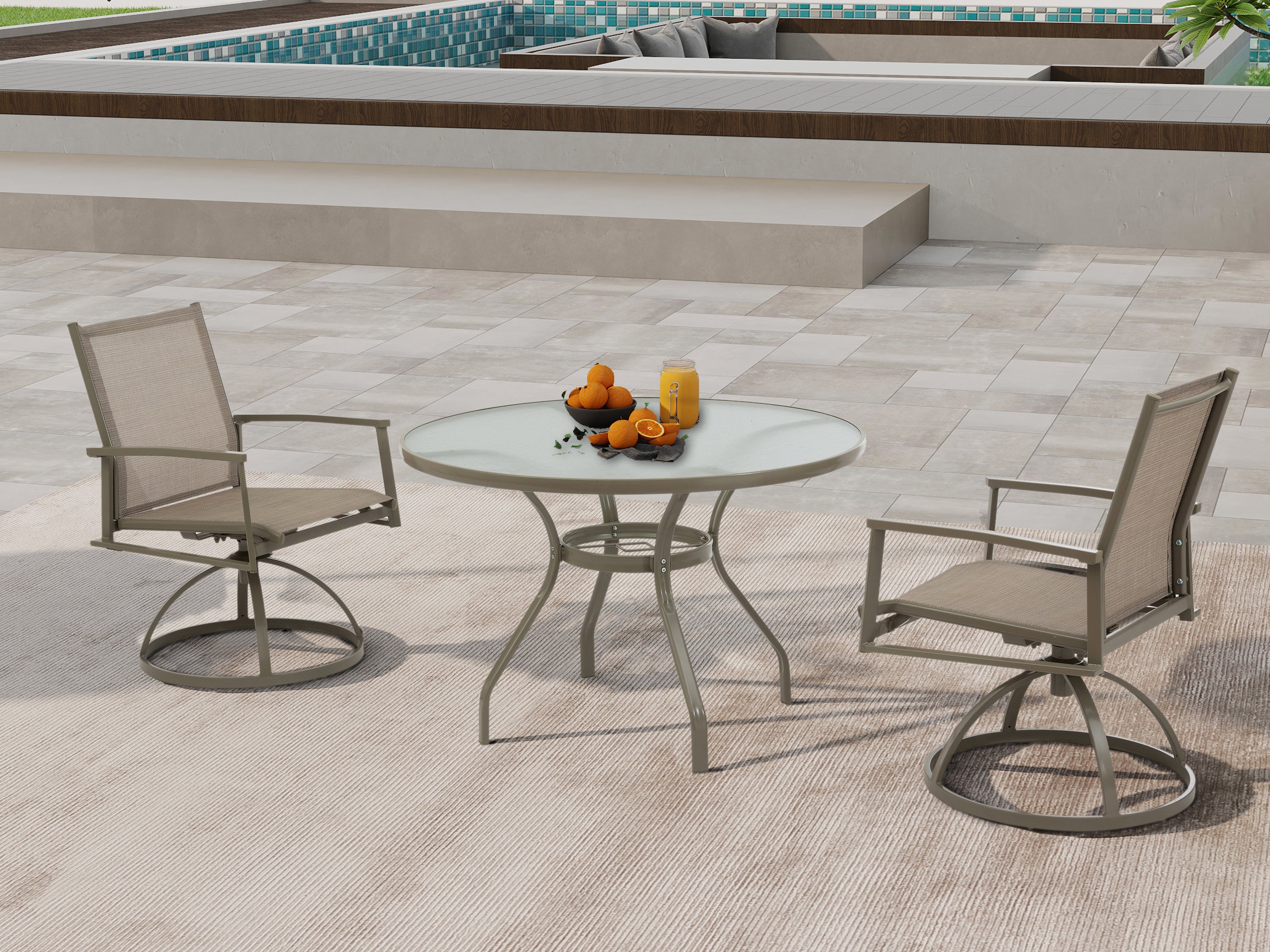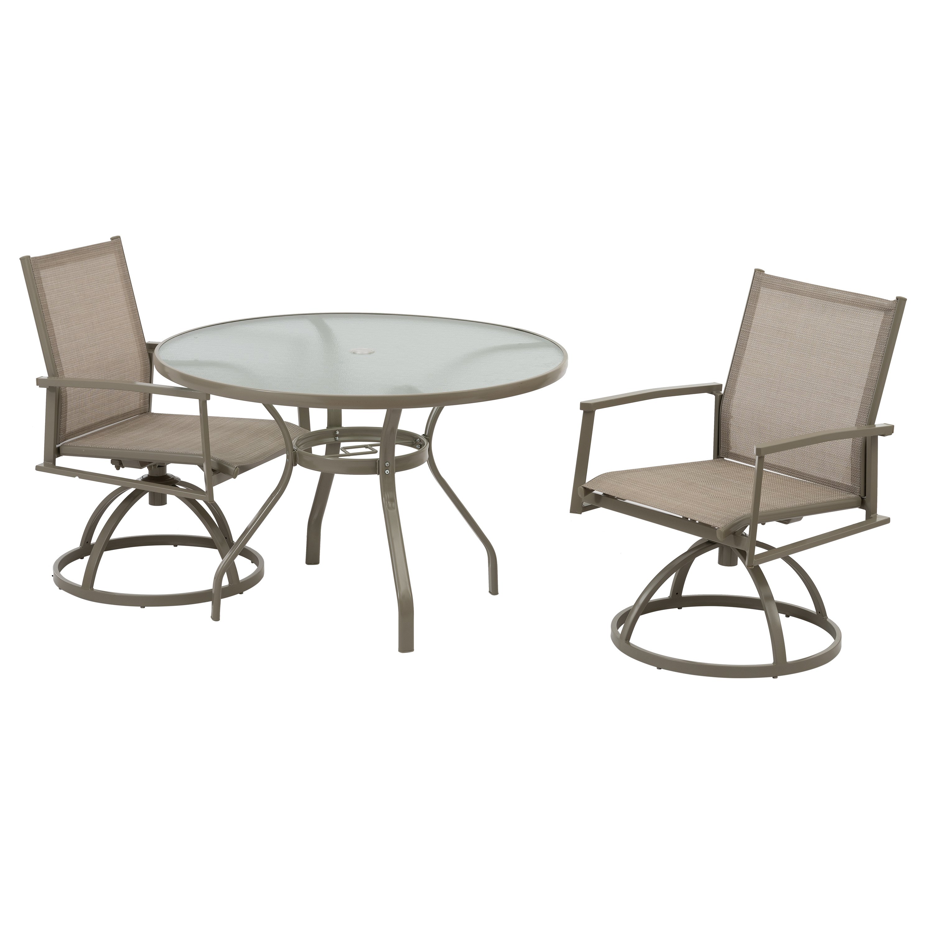 Elegant Design: 3-Piece Bistro Set includes 2 stylish cast aluminum swivel dining chairs and a round dining table.