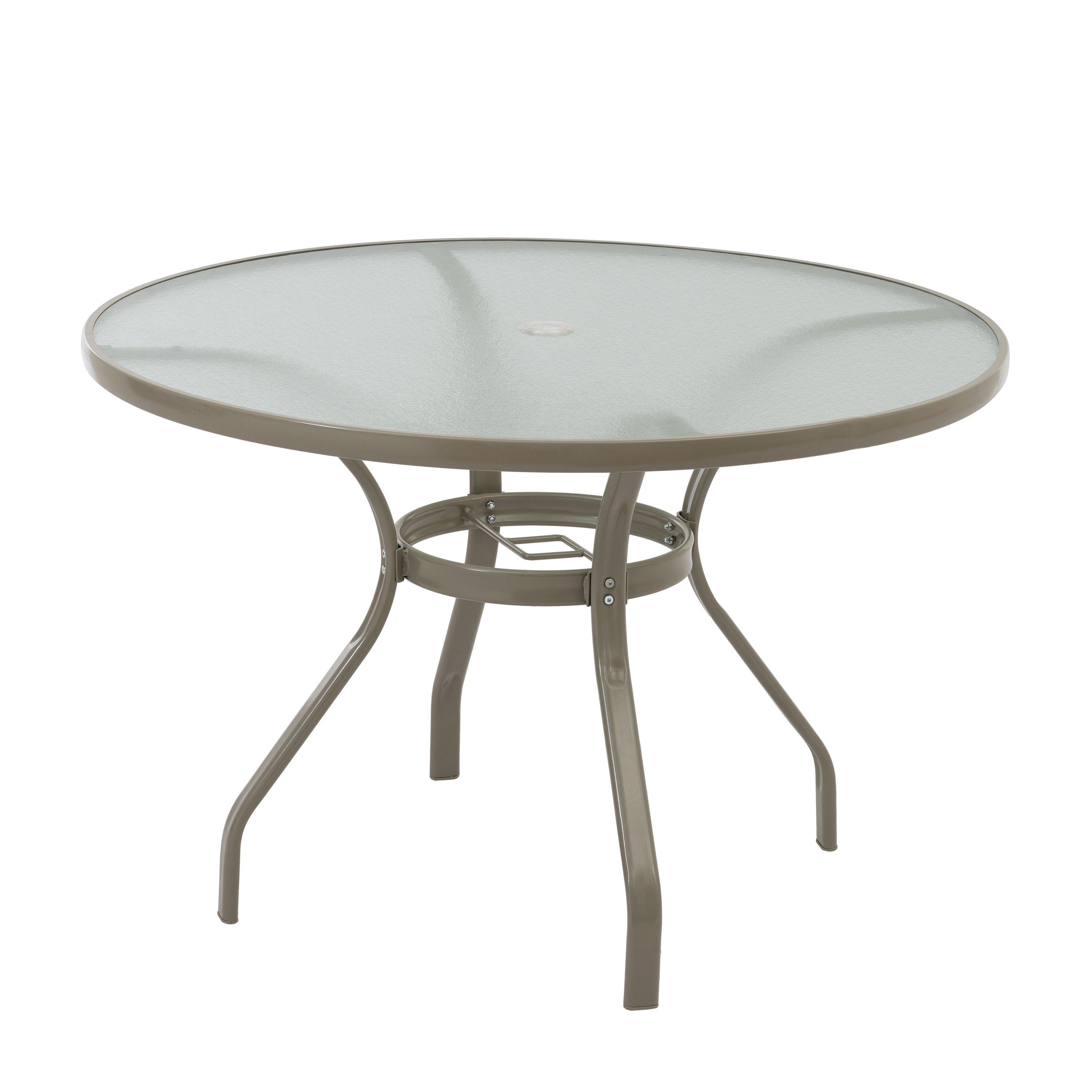 Bistro Table: The small cast-top patio dining table is designed with a lattice weave and scroll design to reduce water build-up; The table can comfortably seat up to 2 guests