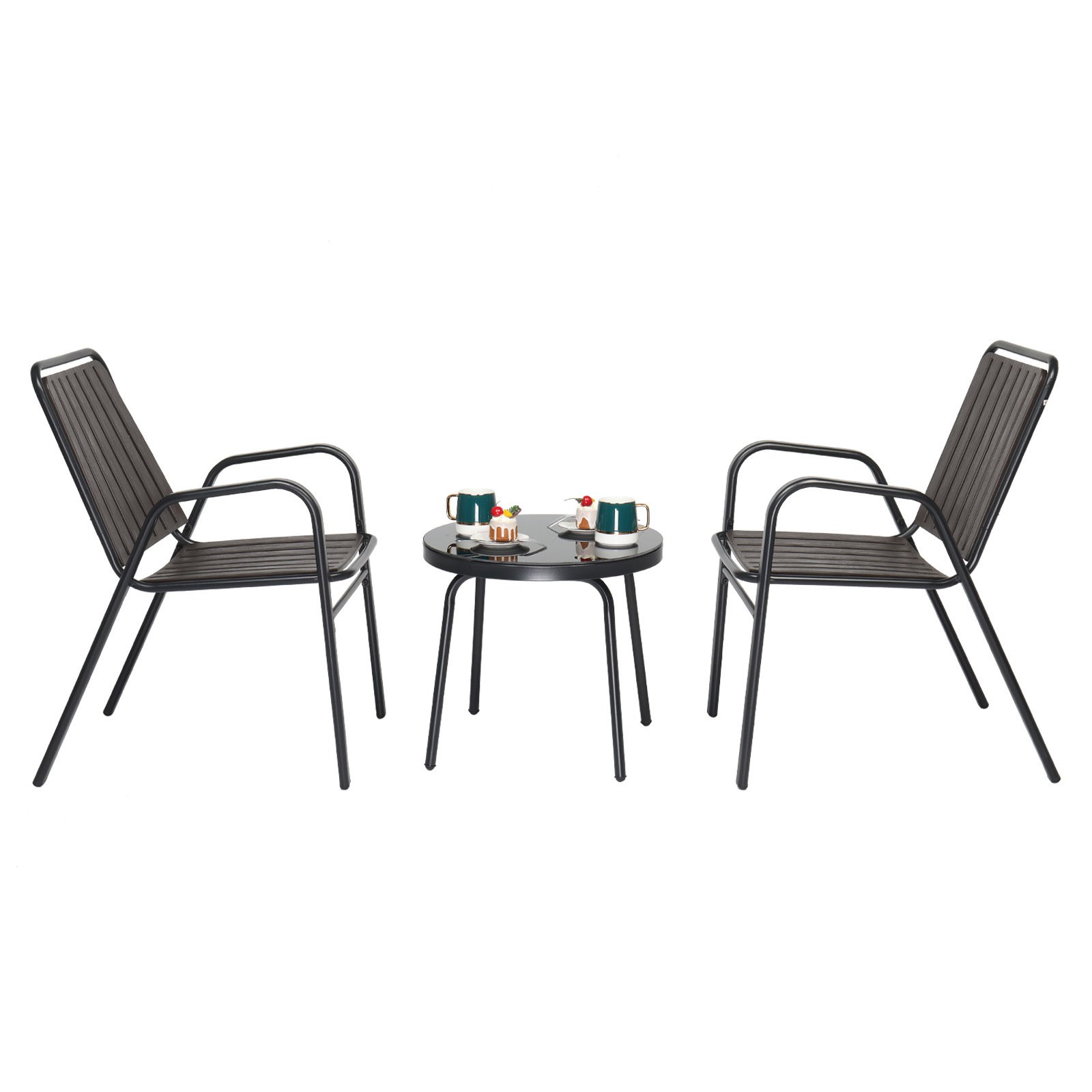 Transform your outdoor space into a captivating oasis with our 3-Piece Bistro Table Set. Immerse yourself in the allure and sophistication of this stunning patio furniture ensemble. Crafted with meticulous attention to detail, this bistro set exudes timeless elegance and adds a touch of luxury to any outdoor setting. The sleek design and intricate detailing make it a true showstopper, while the stackable chairs offer a practical solution for effortless storage and versatility. Whether you're hosting intimate gatherings or simply enjoying some quiet time, this bistro set creates an inviting ambiance that will leave your guests in awe.