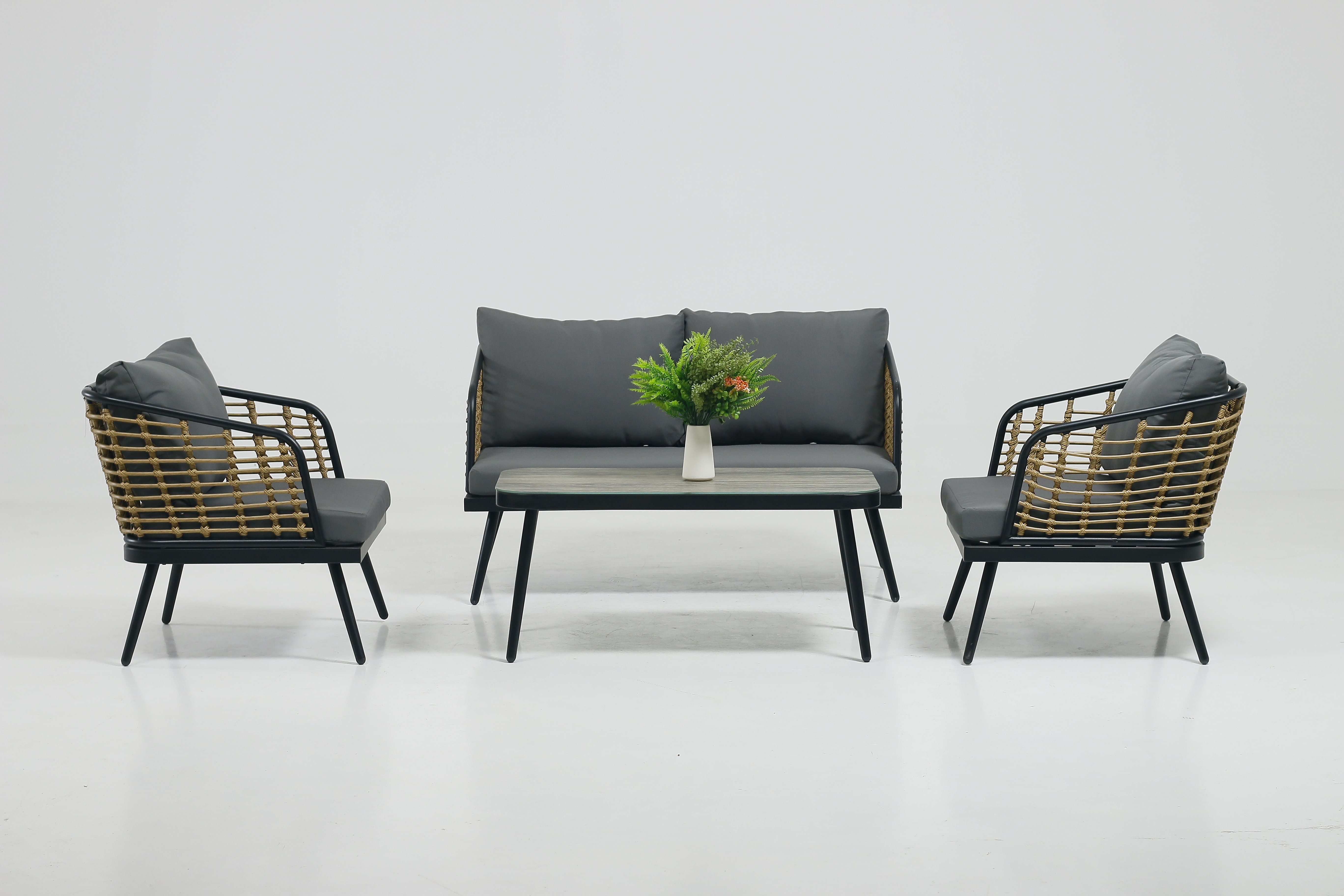 [long-lasting use of PE rattan series] Our rattan series smooth surface, good flexibility, waterproof sunscreen mildew, easy to clean. Compared with traditional rattan materials, the well-designed frame and woven rattan can withstand harsh weather conditions, provide better tactile quality and superior wear resistance, in order to achieve the best outdoor use effect.