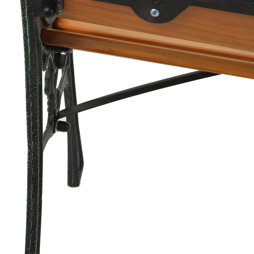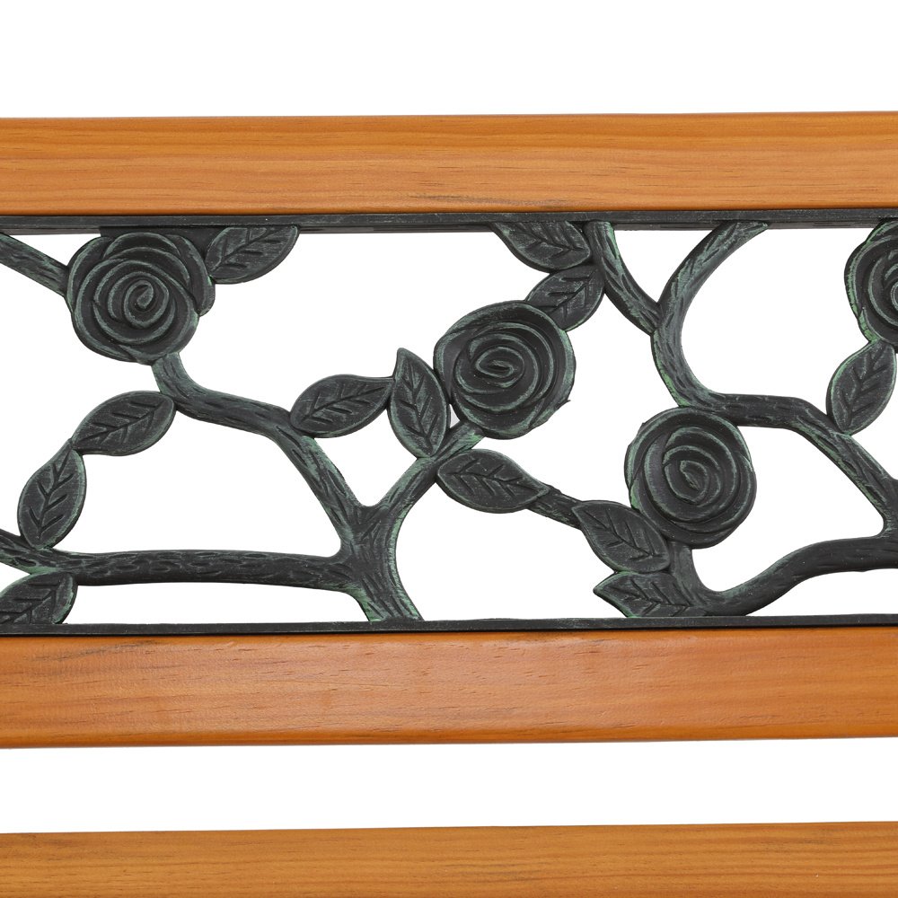 This 49" Garden Bench Patio Porch Chair Deck Hardwood Cast Iron Love Seat is designed to make your garden or patio path complete. Just sit and rest on this beautiful rose style bench while enjoy the great outdoors. Floral design on the seat back lends traditional charm to your garden with horizontal seat slats in a gentle curve to offer great comfort. Powder-coat steel construction and weather-resistant hardwood provides years of durability as well as easy maintenance. The bench is easy to assemble. And all edges are finished to ensure safety, no raw cuts or drips to catch on clothing.Features: