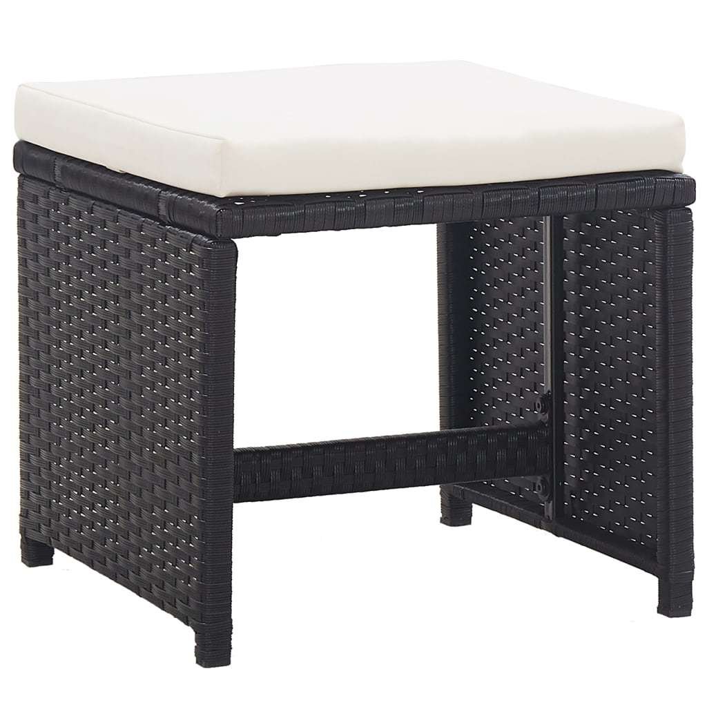 5 Piece Patio Dining Set with Cushions Poly Rattan Black