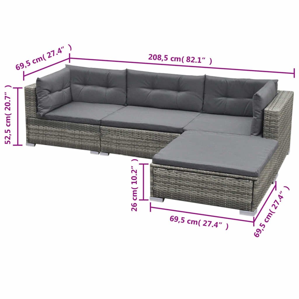 5 Piece Patio Lounge Set with Cushions Poly Rattan Gray
