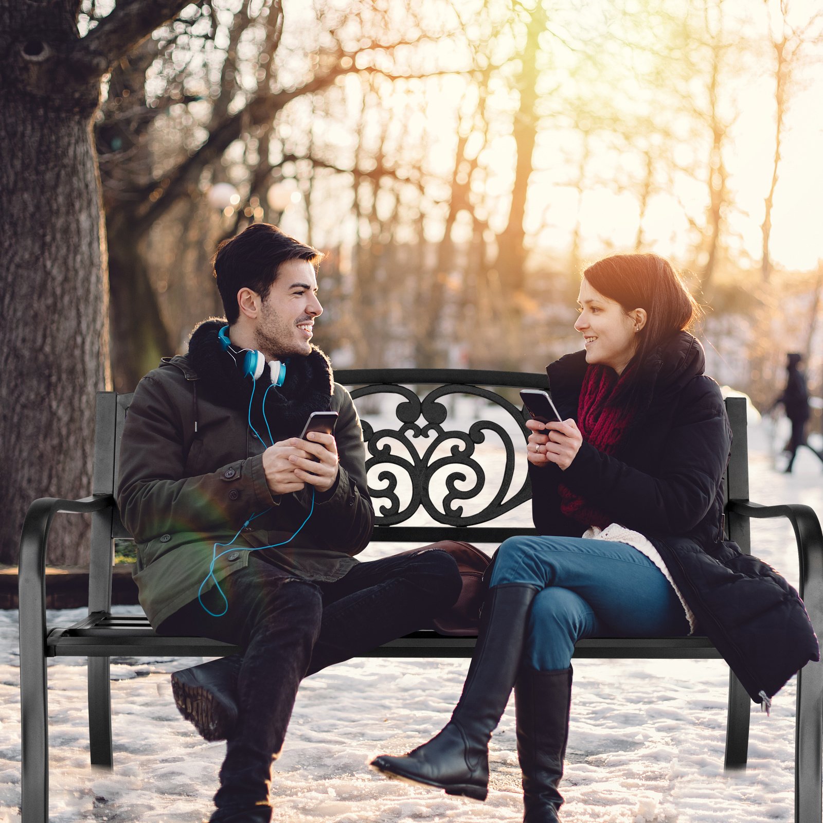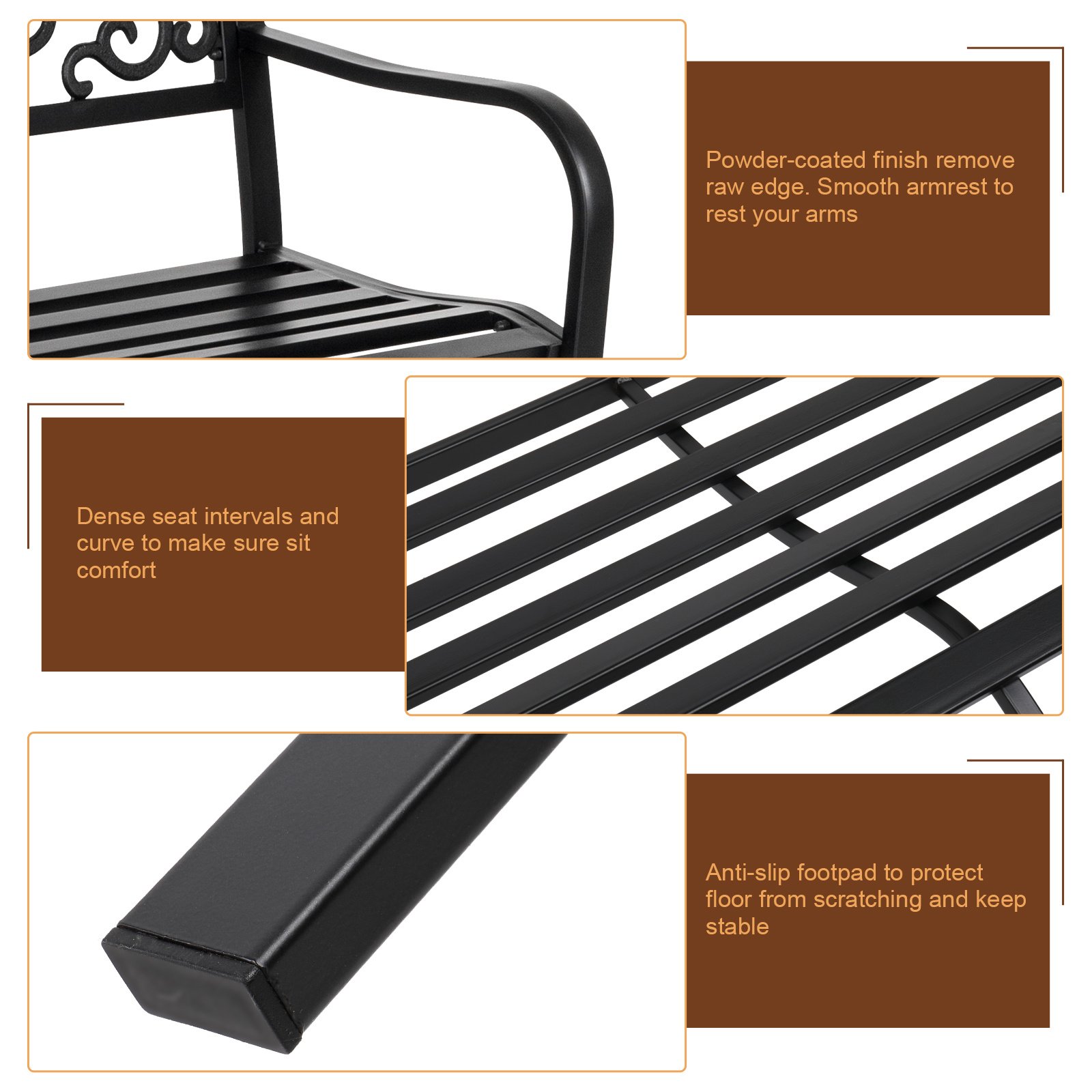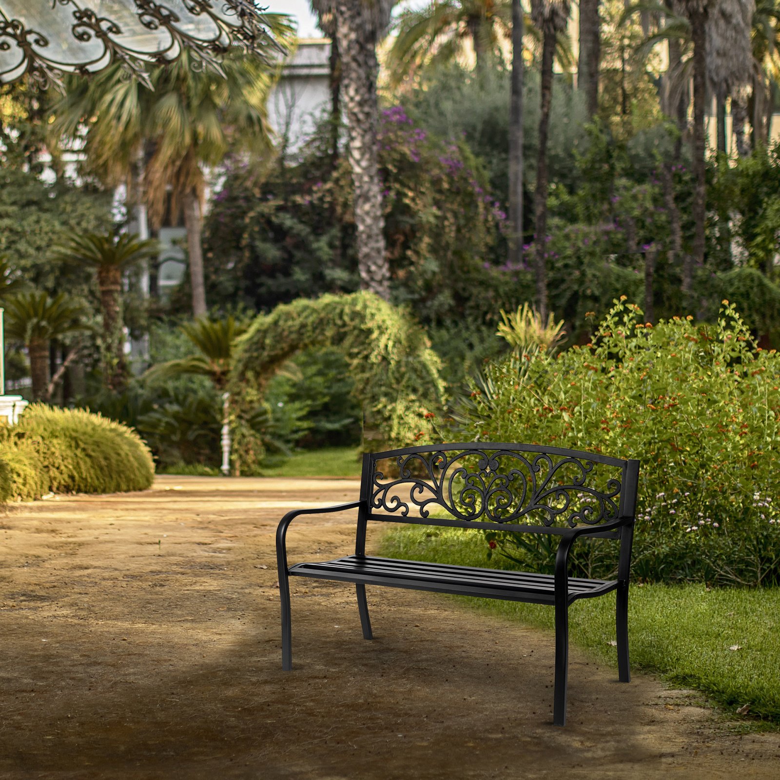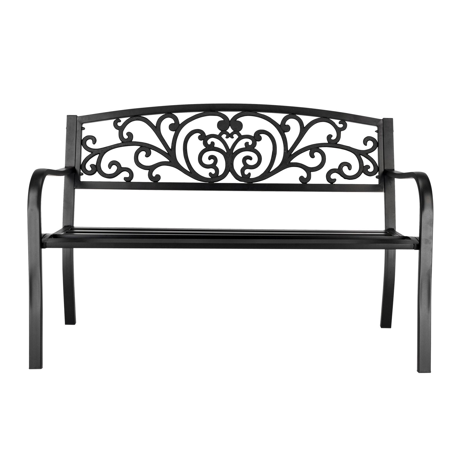 This beautifully designed powder coated bench will add elegance to your front or backyard, which will be a great addition to garden or make a completion for your path. This bench features powder-coat steel construction to deliver durability and light weight, and the antique finish adds an attractive look to your patio or deck. The stylish design on the backrest provides a stylish look, and the bench is easy to assemble. Beautifully designed powder coated bench will add elegance to your front or backyard, ideal for along a path, under a tree, among the flowers or in your favorite peaceful spot.
