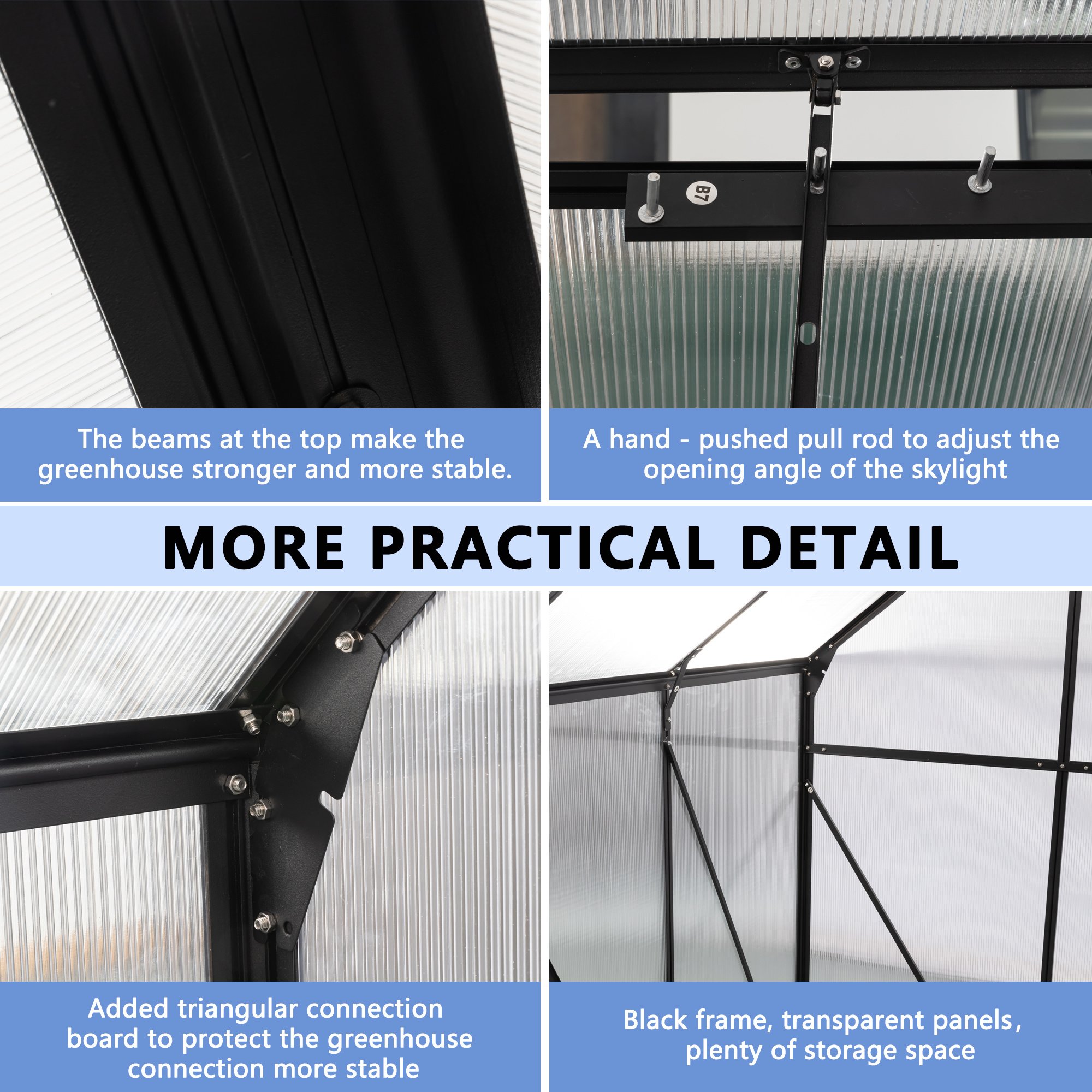 [Heavy-duty & Durable Frame]The 4mm thick polycarbonate board can withstand outdoor temperature from -20℃ to 70 ℃, allowing enough sunlight to pass through and isolating most UV rays. The aluminum alloy frame with powder coating is more durable, won't get rust. The panels allow up to 70% light transmission for optimal plant growth while blocking out over 99.9% of harmful UV rays.