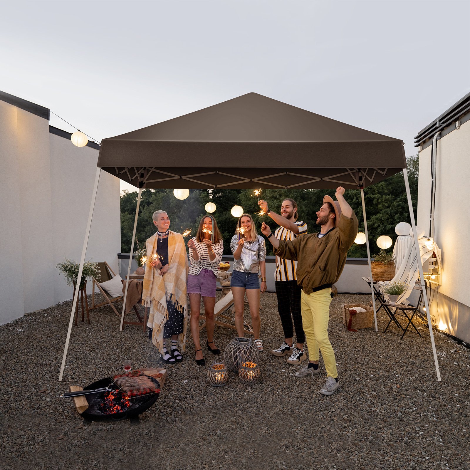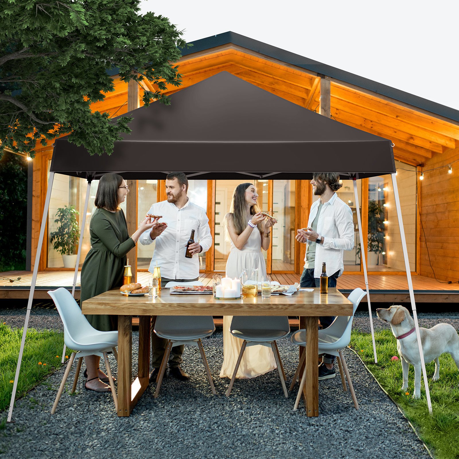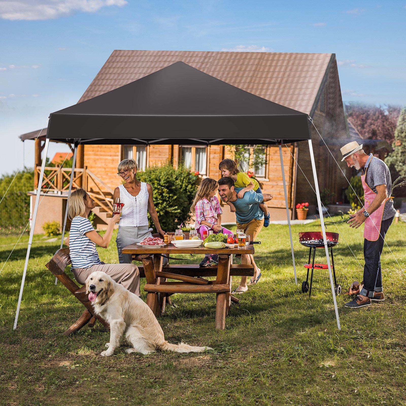 Your family will have a wonderful time with this large outdoor canopy. With a durable, hard canopy and thick, sturdy posts, this canopy is truly the ultimate in practicality and convenience. It comes with a carrying bag so that you can easily bring the convenient gazebo anywhere as a quick, sun-coverage solution. The canopy top also wear silver coating, which is UV-resistant and waterproof. The thicker and more durable powder-coated steel frame features pre-drilled holes so you can anchor it if desired. Set it up on your lawn or on your patio, or take it during camping, and get ready to enjoy delightful outdoor life!