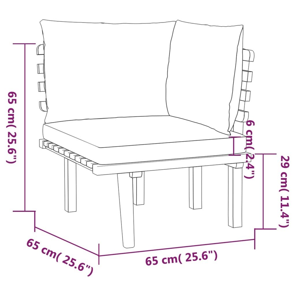 Made of solid acacia wood, the outdoor furniture set is weather-resistant and highly durable. Combined with the thickly-padded cushions, this patio lounge set provides the utmost comfort. You can combine it with other modular segments to create your own personal garden lounge set configurations!