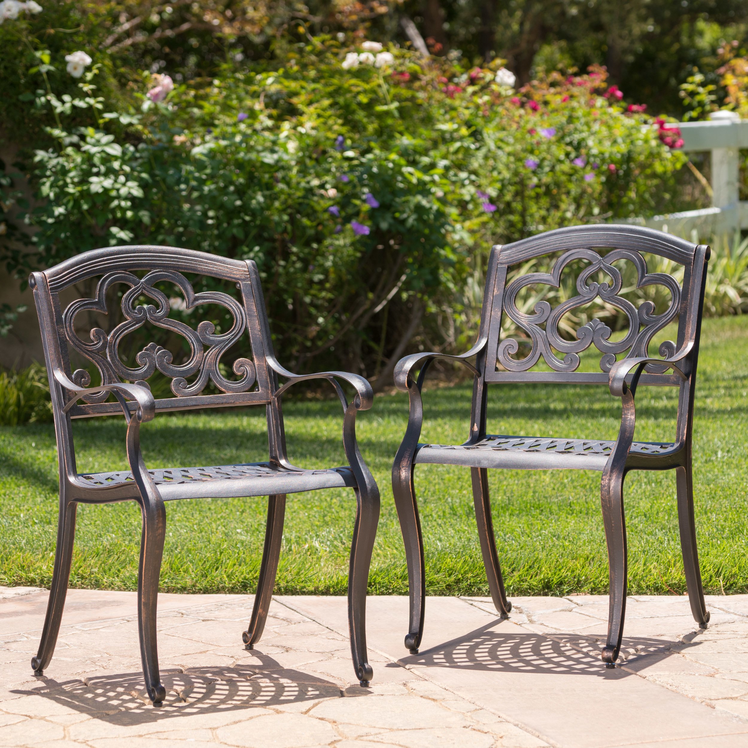 These cast aluminum dining chairs are a wonderful addition for any patio, whether you have an existing dining set or not. These chairs are great on their own or to complement other sets. These chairs have a soft cloud like design on the chair back. Featuring anti rust properties do to their aluminum build along with a comfortable seat, these chairs have everything you need.