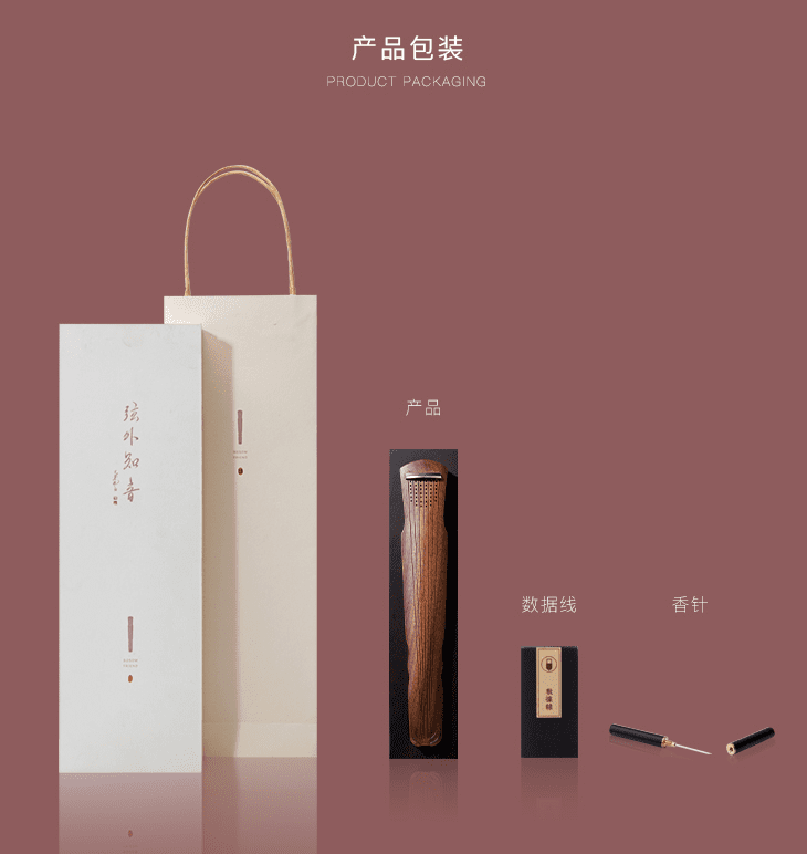 Guqin, as a representative of classical culture and art that can cultivate sentiments, is not incompatible with modern life and technological progress. We put incense into the guqin itself, sound. The design is based on Guqin and Xiangdao culture, which have experienced thousands of years of history and have profound cultural heritage.