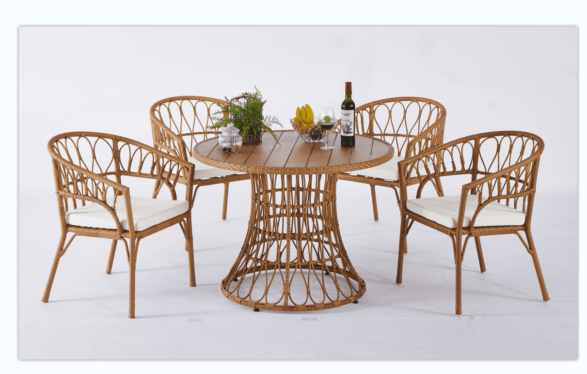 Outdoor dinner simple bamboo woven chair table legs