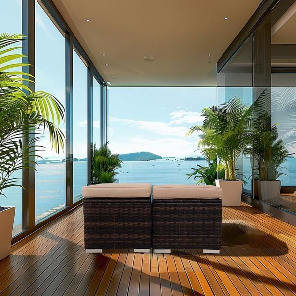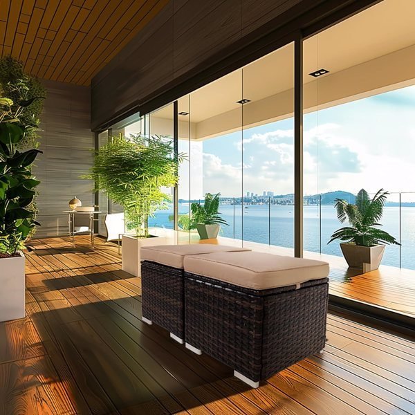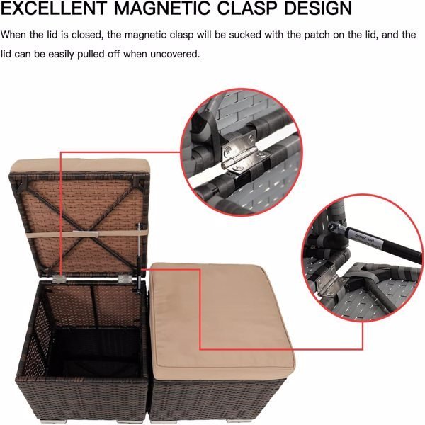 • [Multifunctional Ottomans]-Footrest seat not only provides a perfect place for you to relax your feet, but also can be used as an additional seat for the rattan sofa set. Also, the top lid can be flipped for storage,such as cushions, pool toys, gardening tools and other items.When the cushion is removed, the ottoman turns into a functional side table.