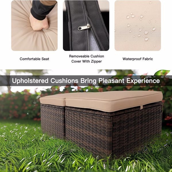 Outdoor Patio Ottomans,2 Pieces PE Rattan Wicker Ottoman Seat,Patio Furniture,Footrest Seat with Removable Cushions and Hidden Storage Space,Seat for