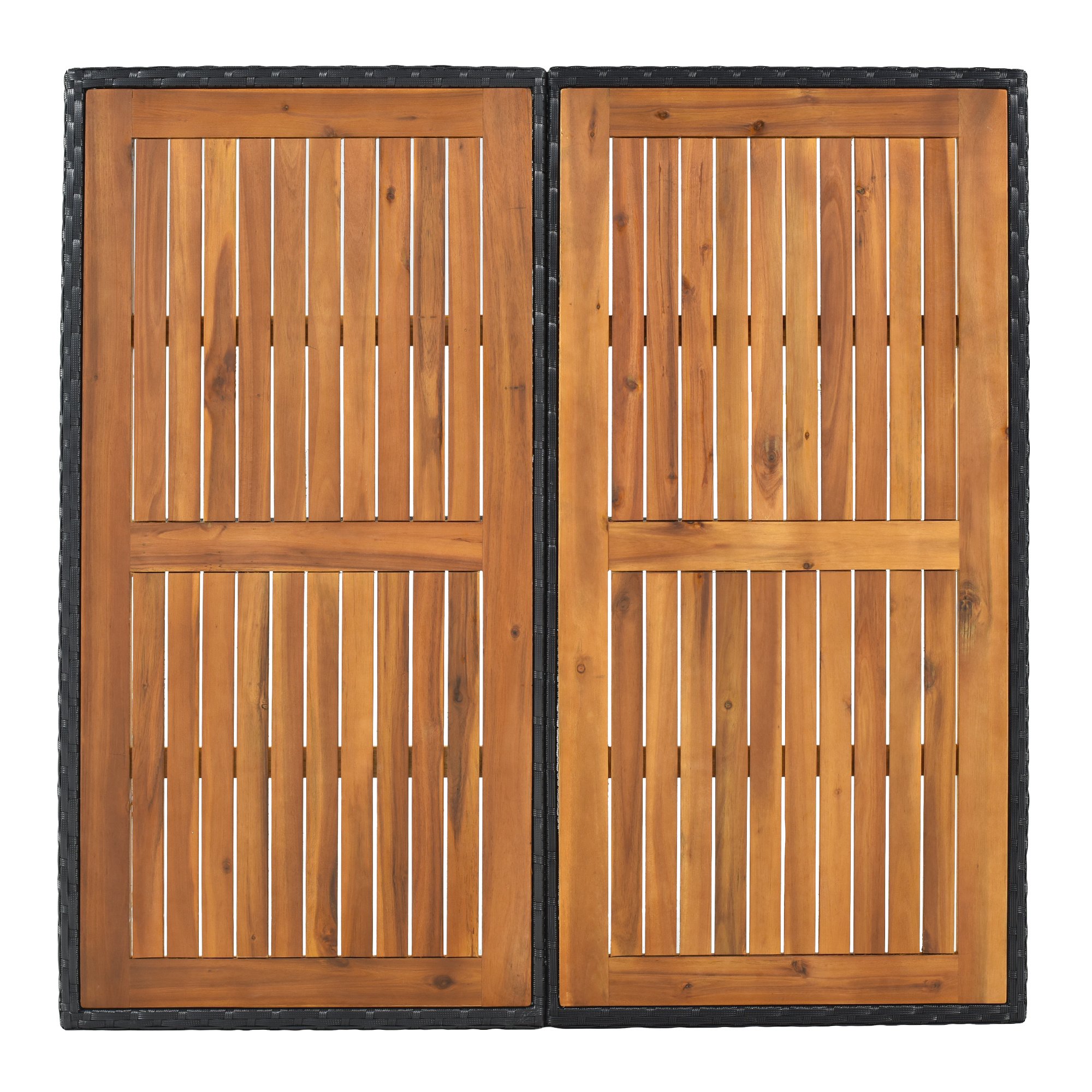 Durable & BeautifulConstructed with durable powder-coated steel frames and woven PE rattan to make the table and chairs durable enough for long time use. Slatted acacia wood table top offers extra charming looking which decorates your home with more elegance.Perfectly highlights your patio or poolside décor.
