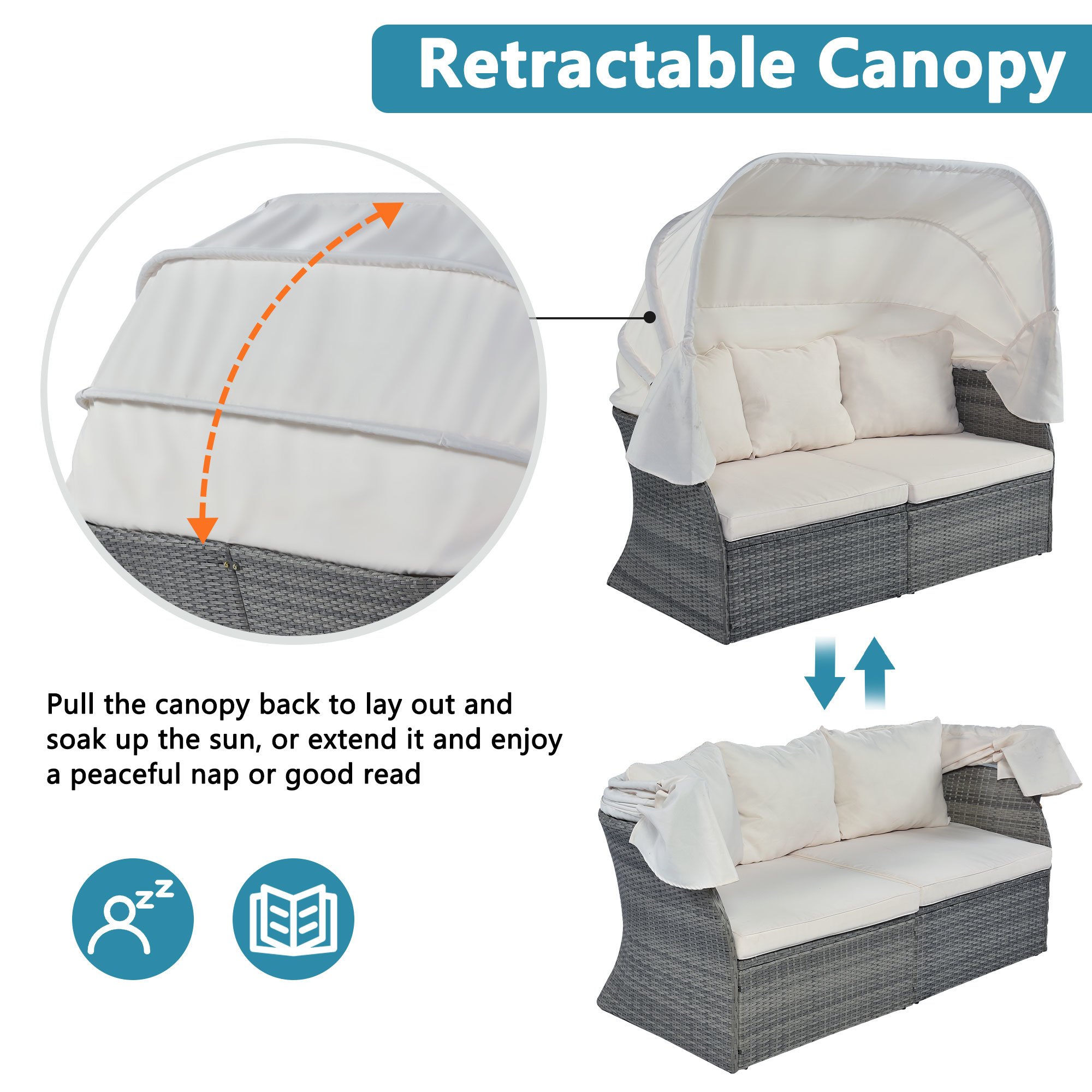 Outdoor Patio Furniture Set Daybed Sunbed with Retractable Canopy Conversation Set Wicker Furniture Sofa Set