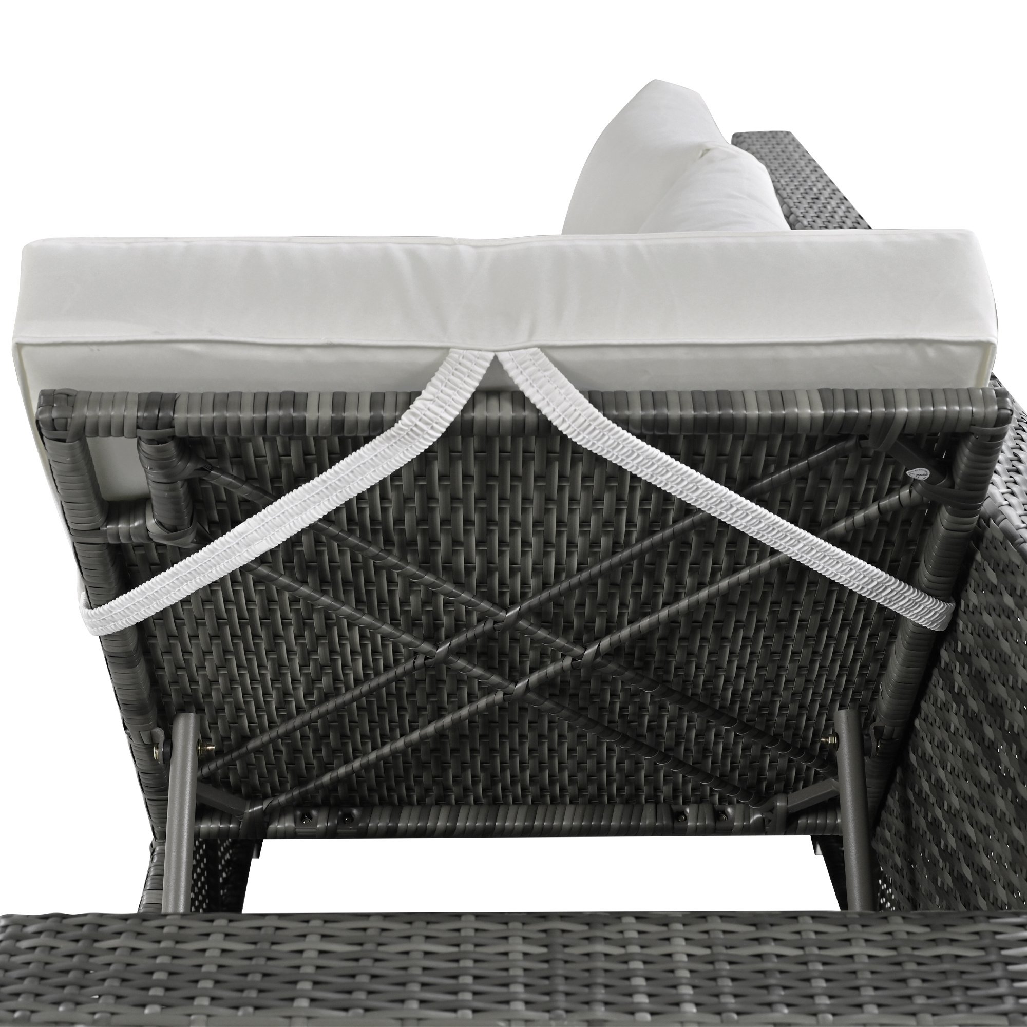 For better comfort; the 3-seat sofa provides with a height adjustable function that allows you to customize your seating experience. The sofa features a 6-level adjustable seat that can be raised or lowered to your desired height; providing comfortable seating for people of different sizes and preferences. Besides; the cushion is fastened by straps which will be fixed and not move.