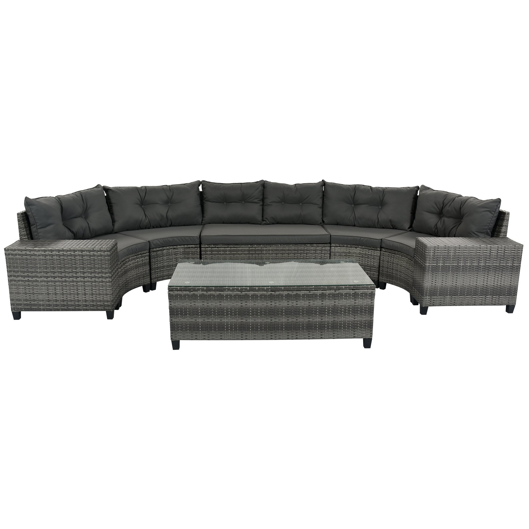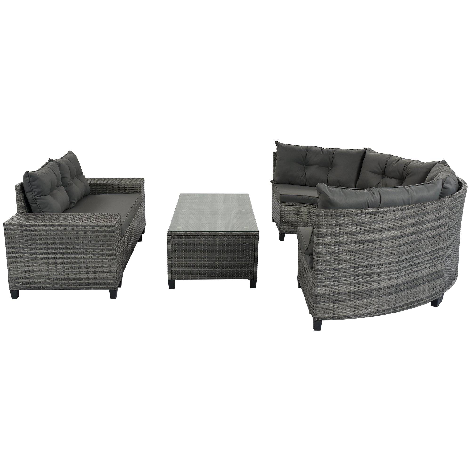 The placement of the arc sofas is smooth and natural so that you can have a more intimate conversation with your families and friends. Elegant gray and fresh beige suit all your styles, and different placement type and distance according to your place. It can be placed in your garden, backyard, poolside and other places. The leg height is 2.4 inches, higher legs make it fine even on the grass. Seating 6 people, it's the perfect setting to host a party or lounge with the family.