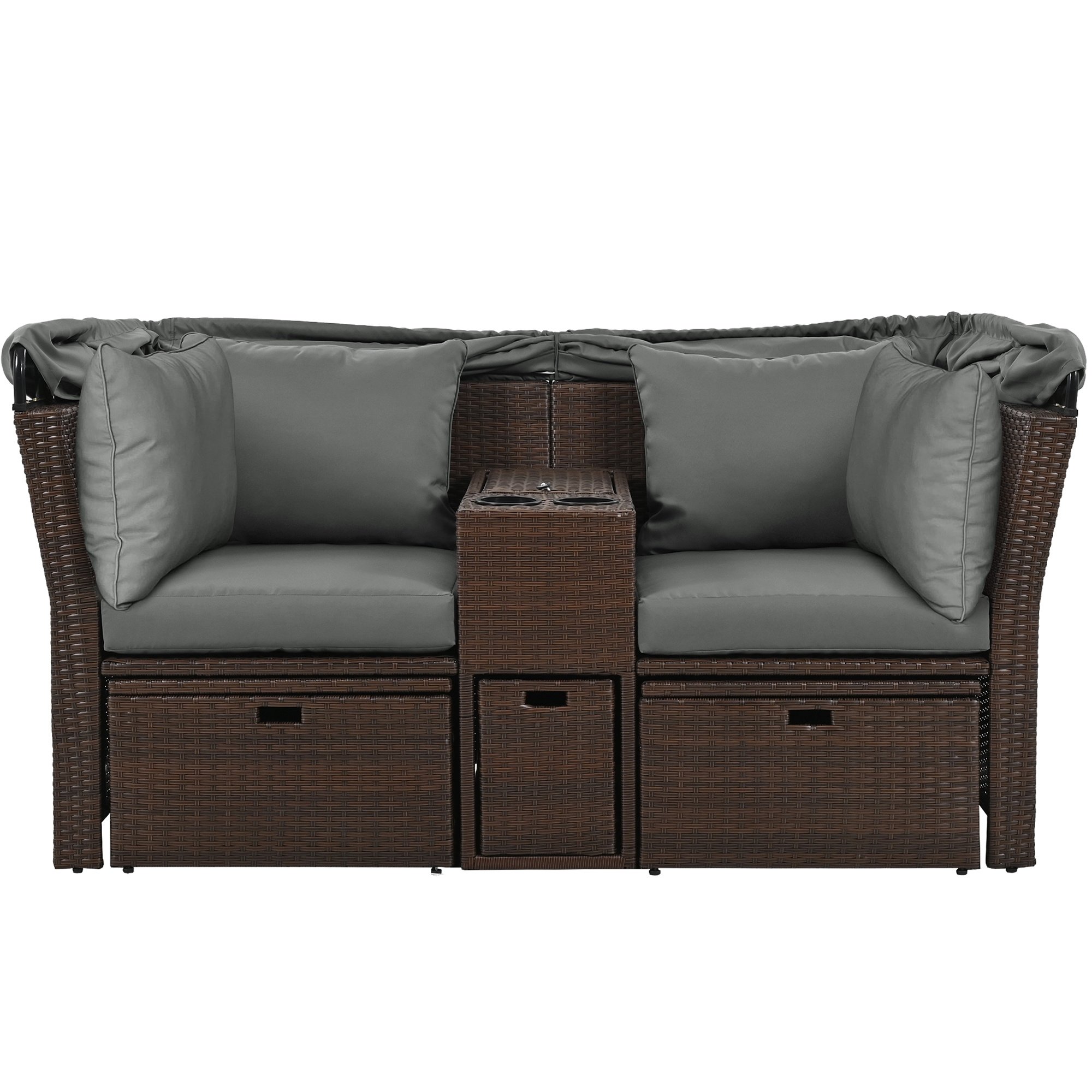 2-Seater Outdoor Patio Daybed Outdoor Double Daybed Outdoor Loveseat Sofa Set with Foldable Awning and Cushions for Garden, Balcony, Poolside