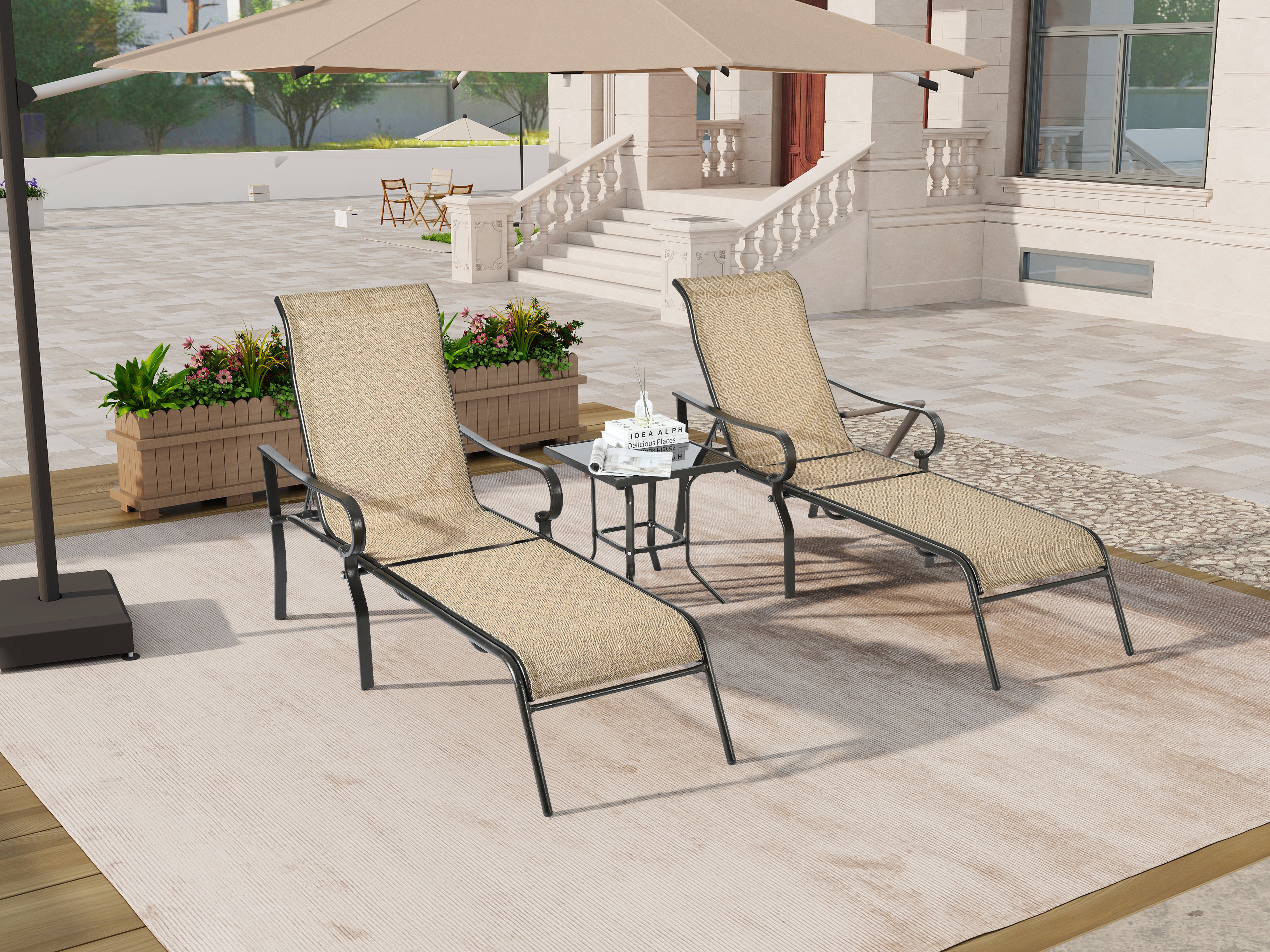 [Breathable Materials & Solid Frame]: This lounge chair is made of breathable fabric and heavy-duty powder-coated steel frame, which ensures the durability for long term use. Besides, the extra support bars let it bear a maximum 440 pounds of load.