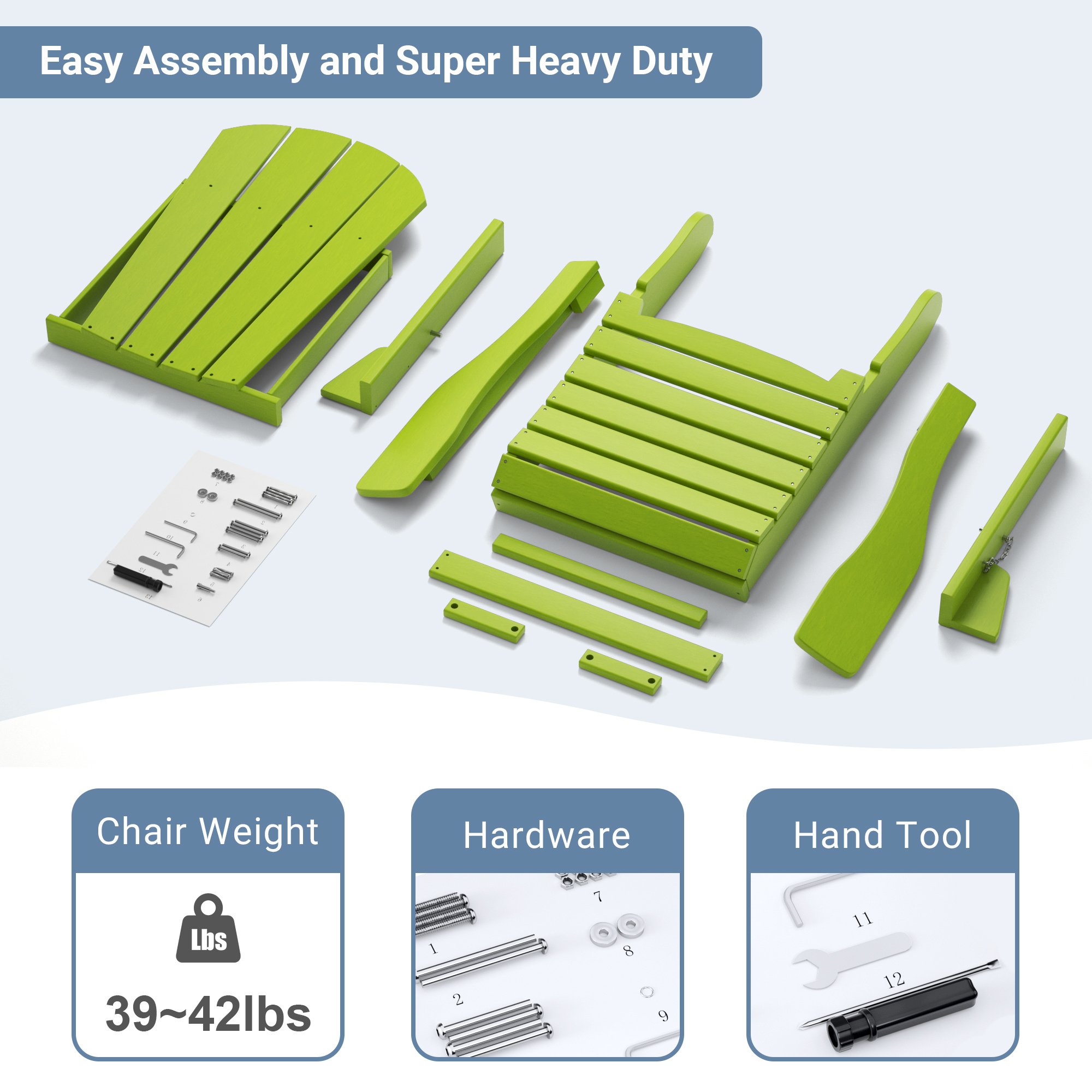 4.[Heavy Duty and Super Sturdy Chair] The HDPE material is heavy duty and it may be heavier than a soft wood chair. The weight is around 8-9 lbs for each chair. It will not blow over in high winds.The wide arms and comfy lounging backrest make the Adirondack lawn chairs adorable and super comfortable.