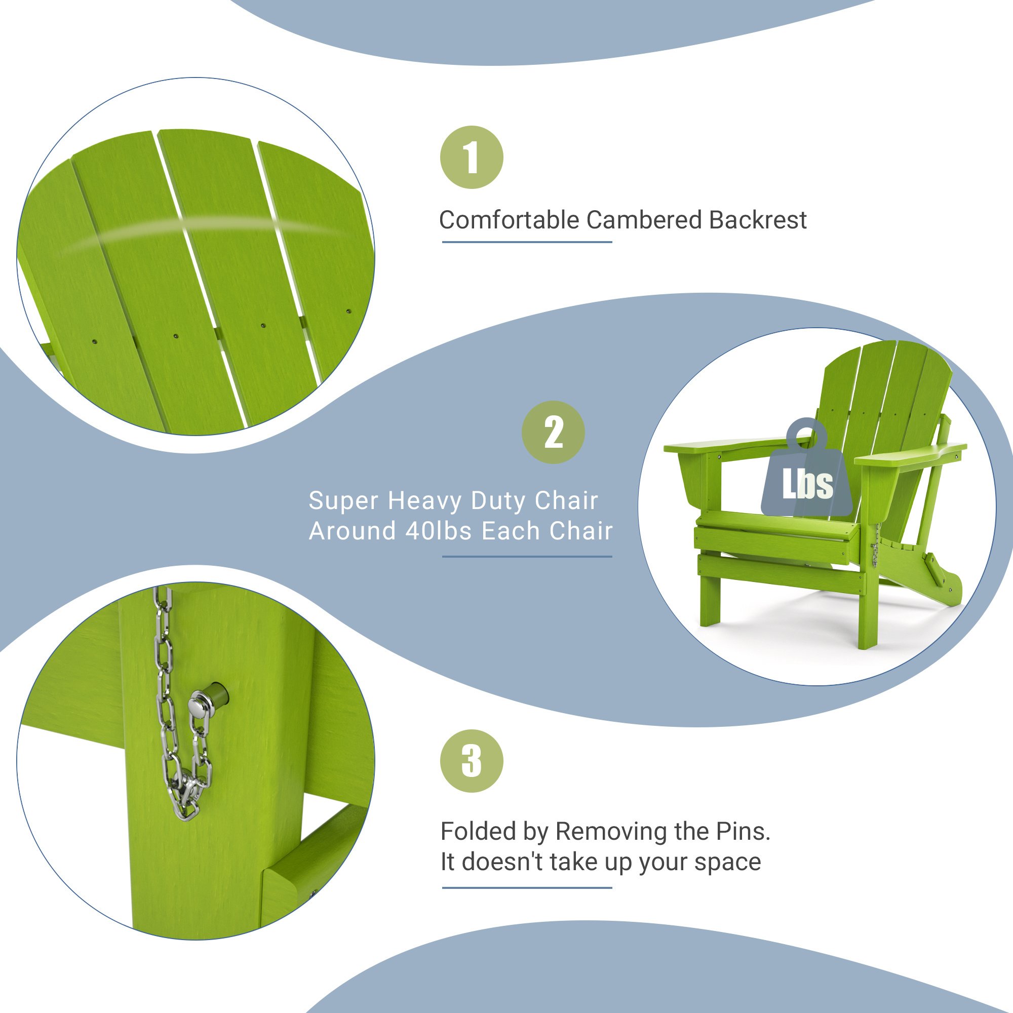 1.[Folding Adirondack Chairs] The Adirondack chair can be folded by removing the pins that are attached by a chain. It’s easy to operate. When you're not using it and doesn't take up your deck space. It is good for storage and easy to move.