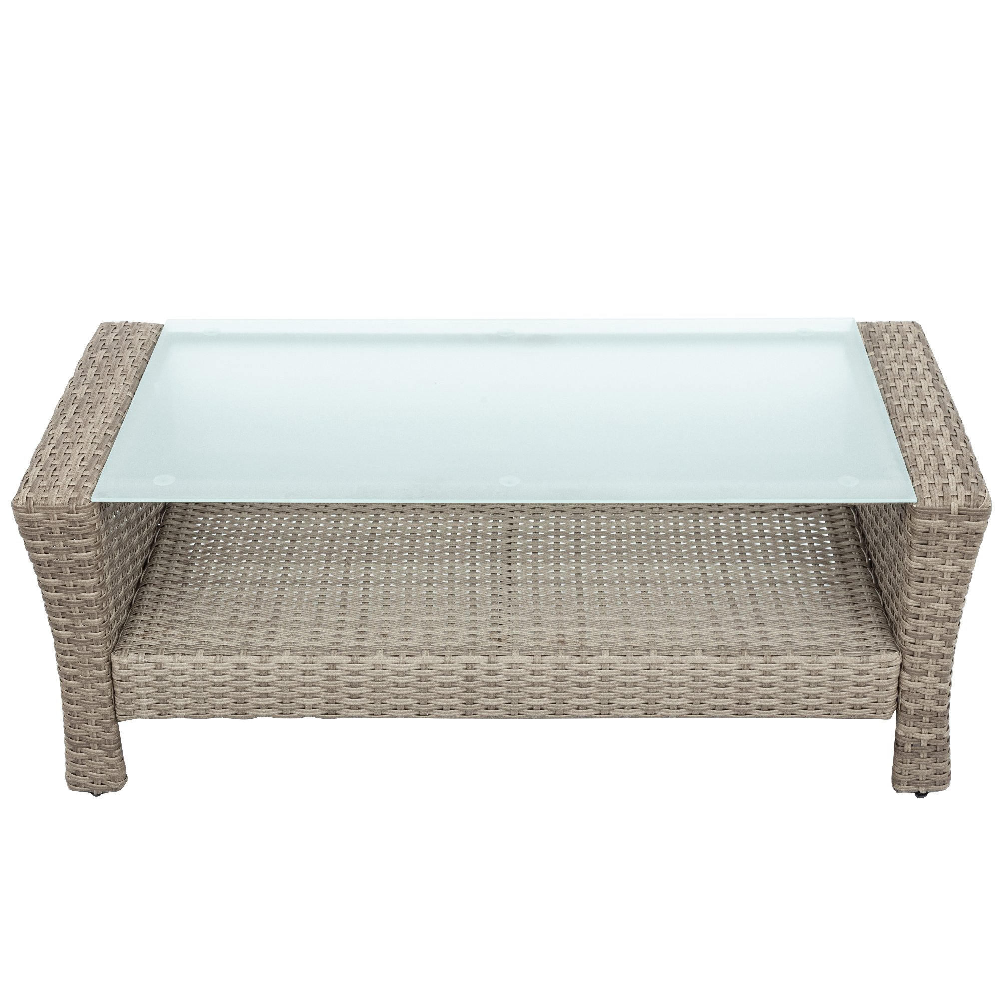 3.[Tempered Glass Coffee Table] Enjoy the matching coffee table with a shatter resistant tempered glass surface, acting as the perfect center piece for holding food and drinks during outdoor meals and entertaining, board games for family night and more. Featuring built-in underside storage shelf, users have plenty of space to store outdoor essentials, reading materials, games and more.