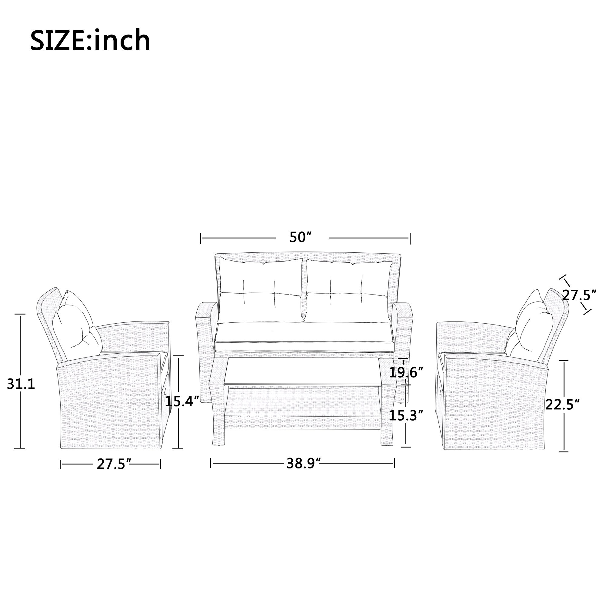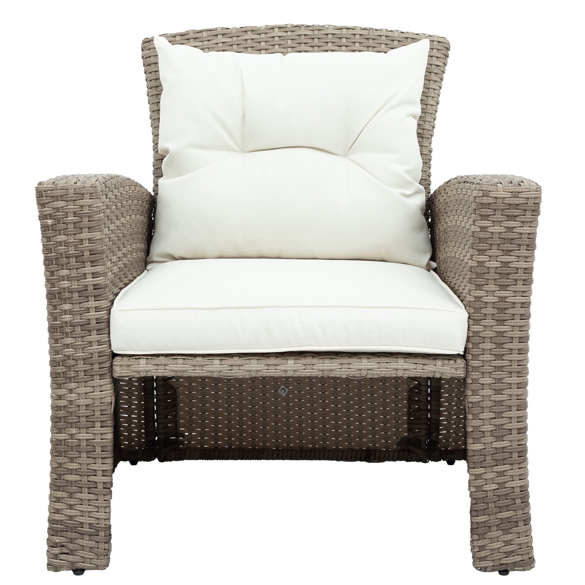 4.[Comfort & Storage] Sink into relaxation with 360 comfort from stuffed seat and dimpled back cushions for soothing support while outdoors. Comfort is a central focus of this set design with matching ottomans to conveniently prop your feet up allowing you to completely lean back and relax after a long day. Tuck away the ottomans underneath the sofa chairs for space saving just where you need it and enjoy extra storage under the love seat.