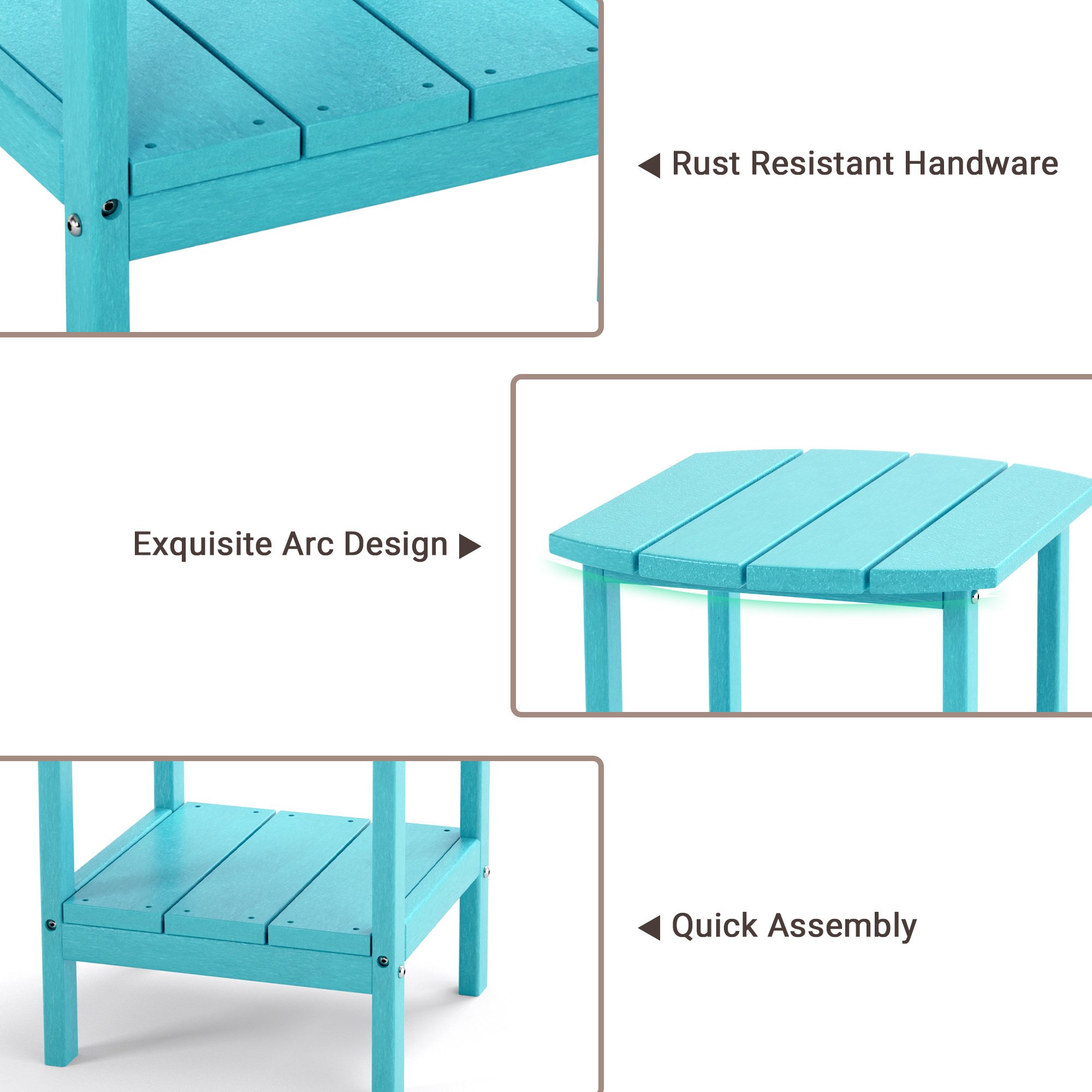 1.[All-Weather Outdoor Side Table] outdoor side tables are made with a high-density polyethylene (HDPE). HDPE Lumber is a recyclable and environmentally friendly material. This material has astonishing performance in resistance to all types of weather. They have exceptional resistance to harmful substances; oil and fuels; salt spray; and other environmental stresses. They do not absorb moisture.