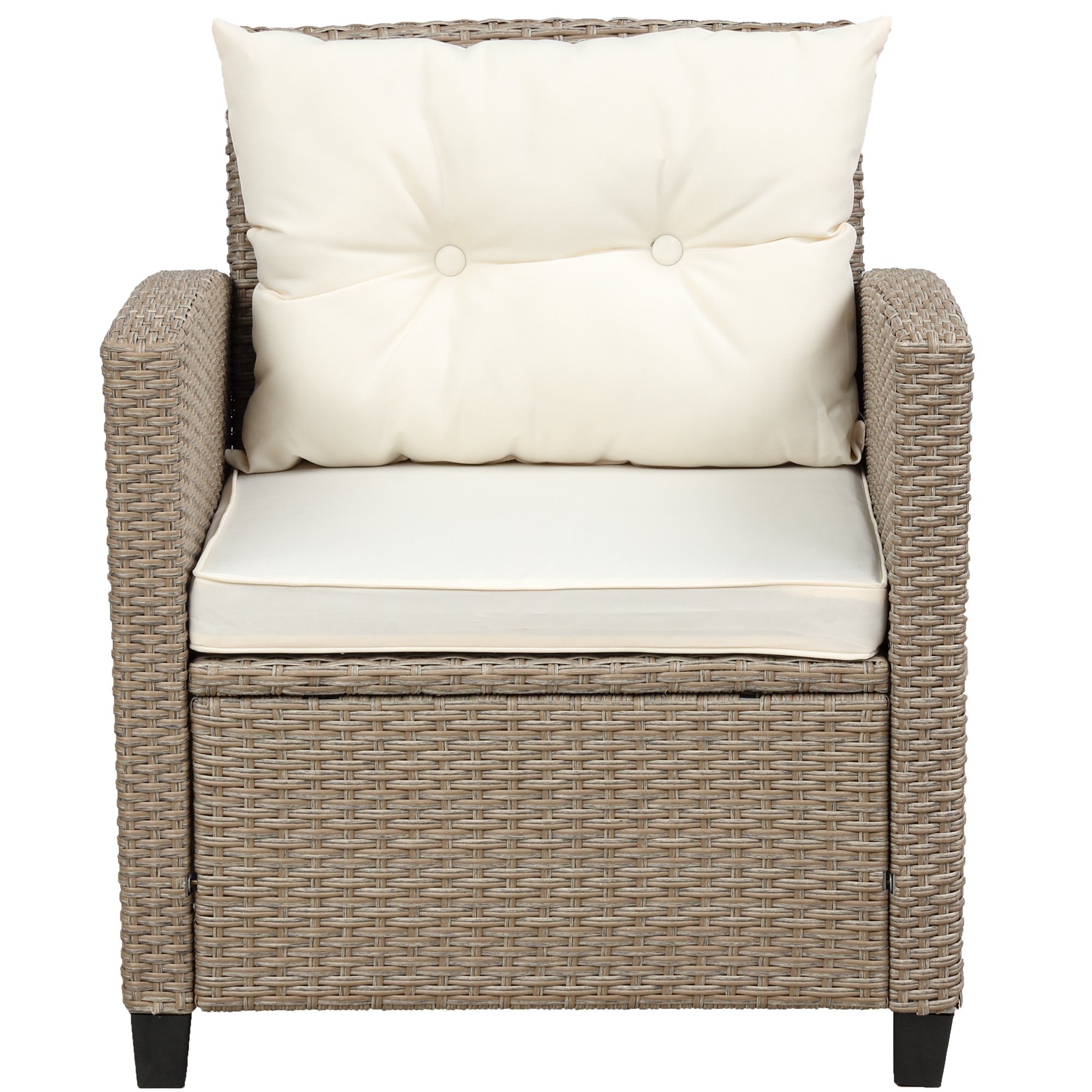Home > Outdoor, Patio Furniture Sets, 4 Piece Conversation Set Wicker Ratten Sectional Sofa with Seat Cushions(Beige Brown)