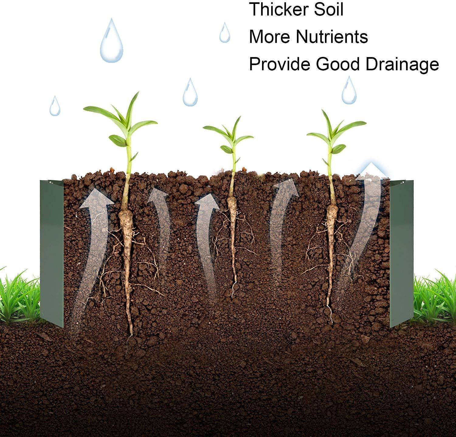 Fabulous Planter Box: 48" x 36" x 12" square galvanized raised garden bed provides good drainage, keeps weeds out of the soil, repels insects and protects your plants; you can use this great gardening tool in your Grow your favorite plants on the patio.Made of Galvanized Steel: Anti-rust Safe Material; No Contamination to Soil, Safe for Plants and Humans; No Sharp Edges for Outdoor Bed Kits, Won't Hurt Your Fingers.The sheet metal is designed with a wavy structure for better compression resistance; thickened steel and reinforced corners can easily secure soil and plants.Just use screws to connect 4 parts, each part is clear at a glance; you can also invite your family to assemble this garden bed in minutes.The raised soil directly touches the ground, expelling excess water, protecting plant root health and allowing plant roots to grow freely.