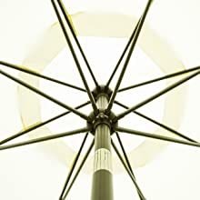 Sturdy frame structure: Our outdoor patio umbrella is made of rust-free steel with 6 heel stainless steel heavy-duty ribbed brackets, which make it perform better in wind and rust resistance and make the umbrella durable