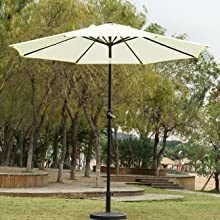 Wide applicable: Our 9 feet outdoor patio umbrella is perfect for a 40-inch table with 4 to 6 chairs, is perfect and essential for summer or sunny days to shade sunshine, apply to yards, beaches, gardens, patios, square, cafe, restaurant, pools and decks