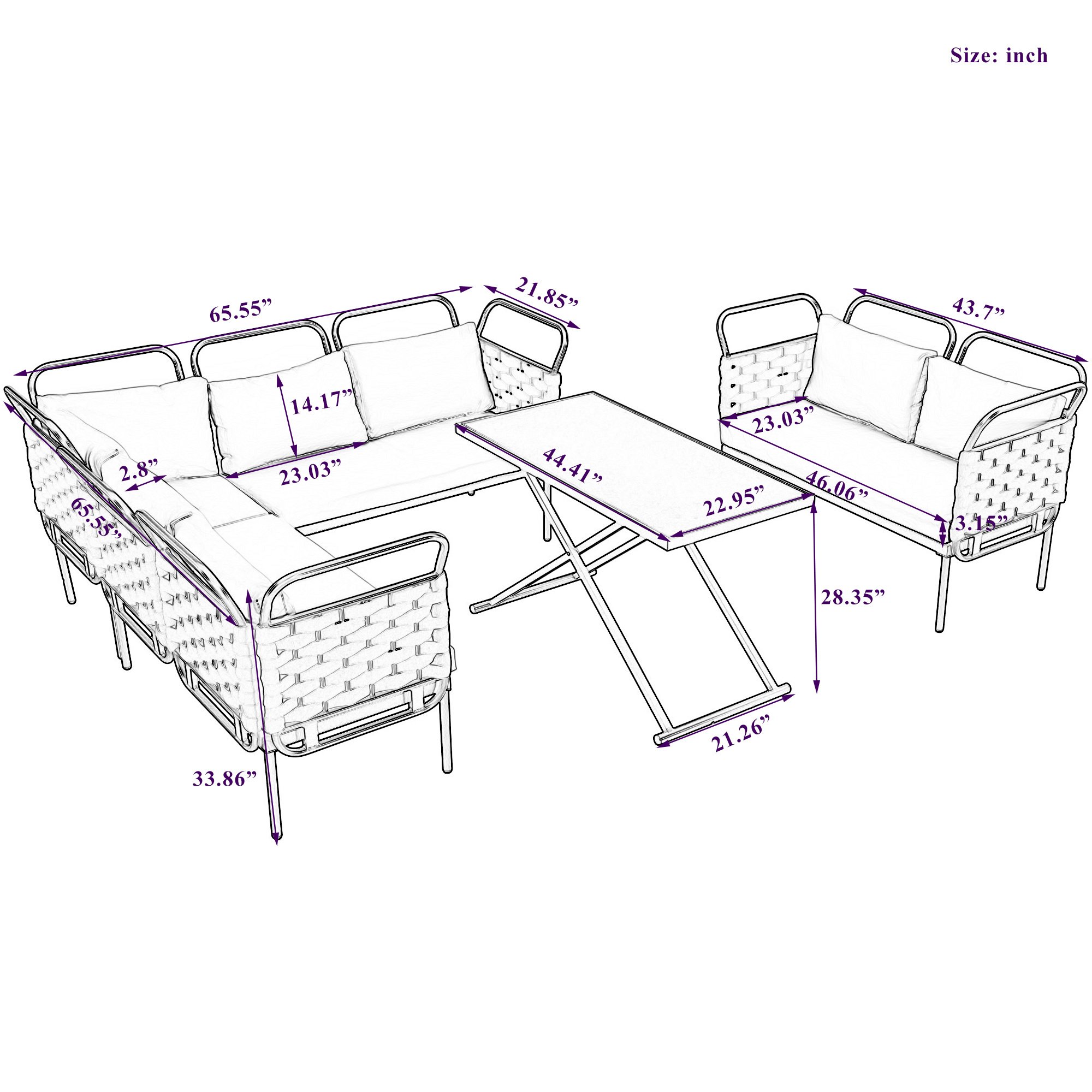 [Sturdy Yet Stylish Foundation] Picture an outdoor sofa set designed not just to stand the test of time but to do so with unmatched elegance. With a robust metal frame elegantly entwined with high-quality woven rope, this ensemble offers a sanctuary for up to 7 guests. It's the perfect stage for endless conversations, laughter, and the creation of memories, wrapped in the warmth of sophisticated design and resilient materials.