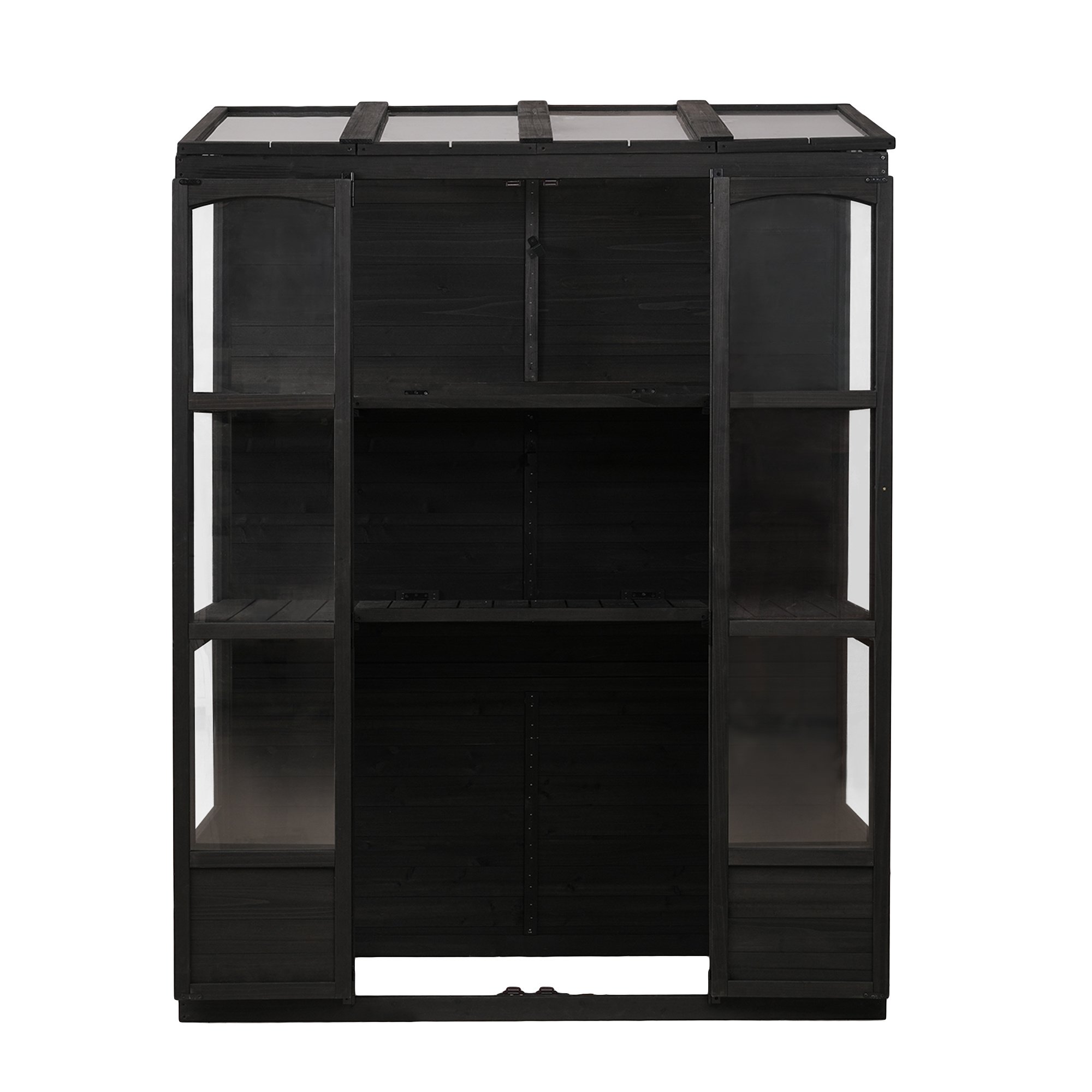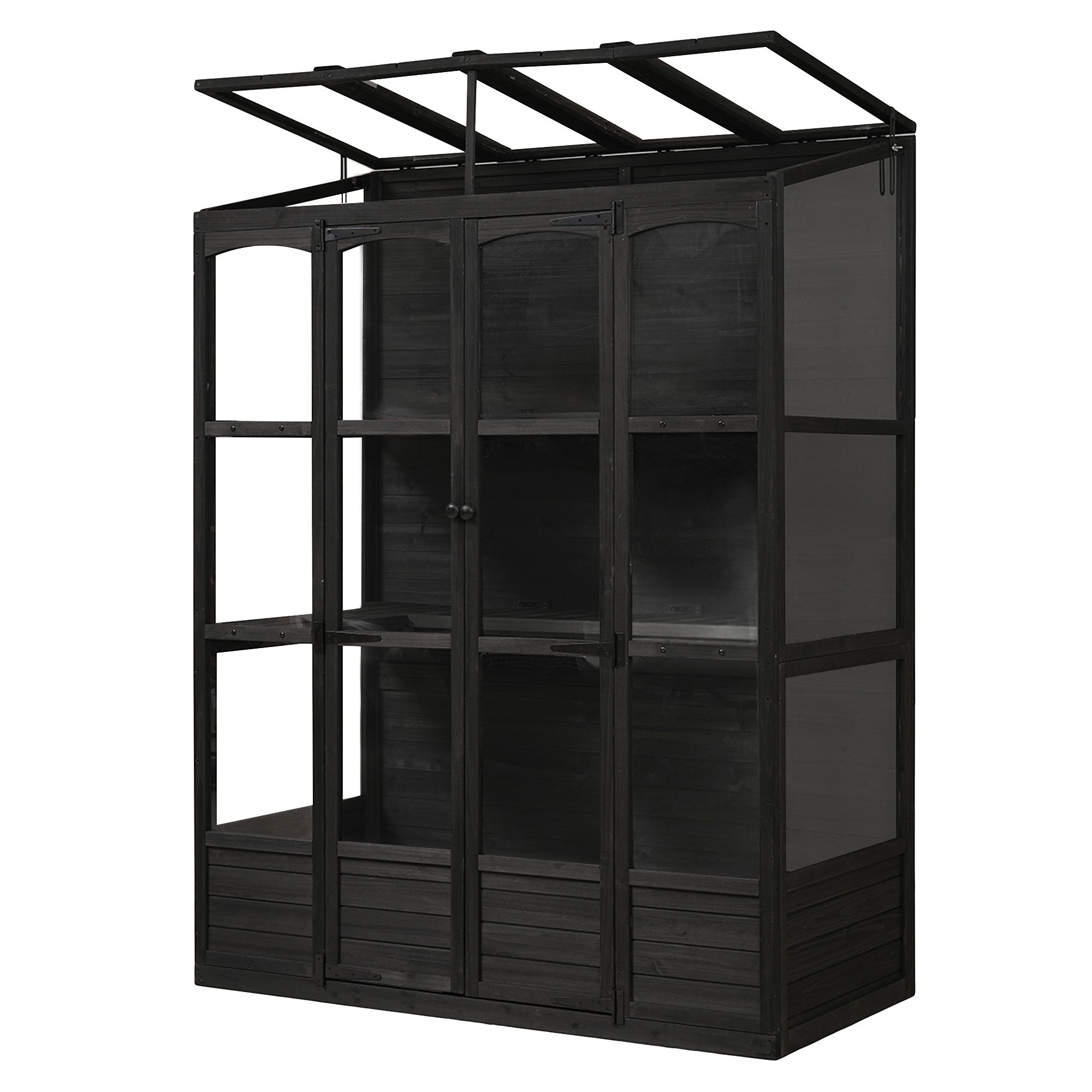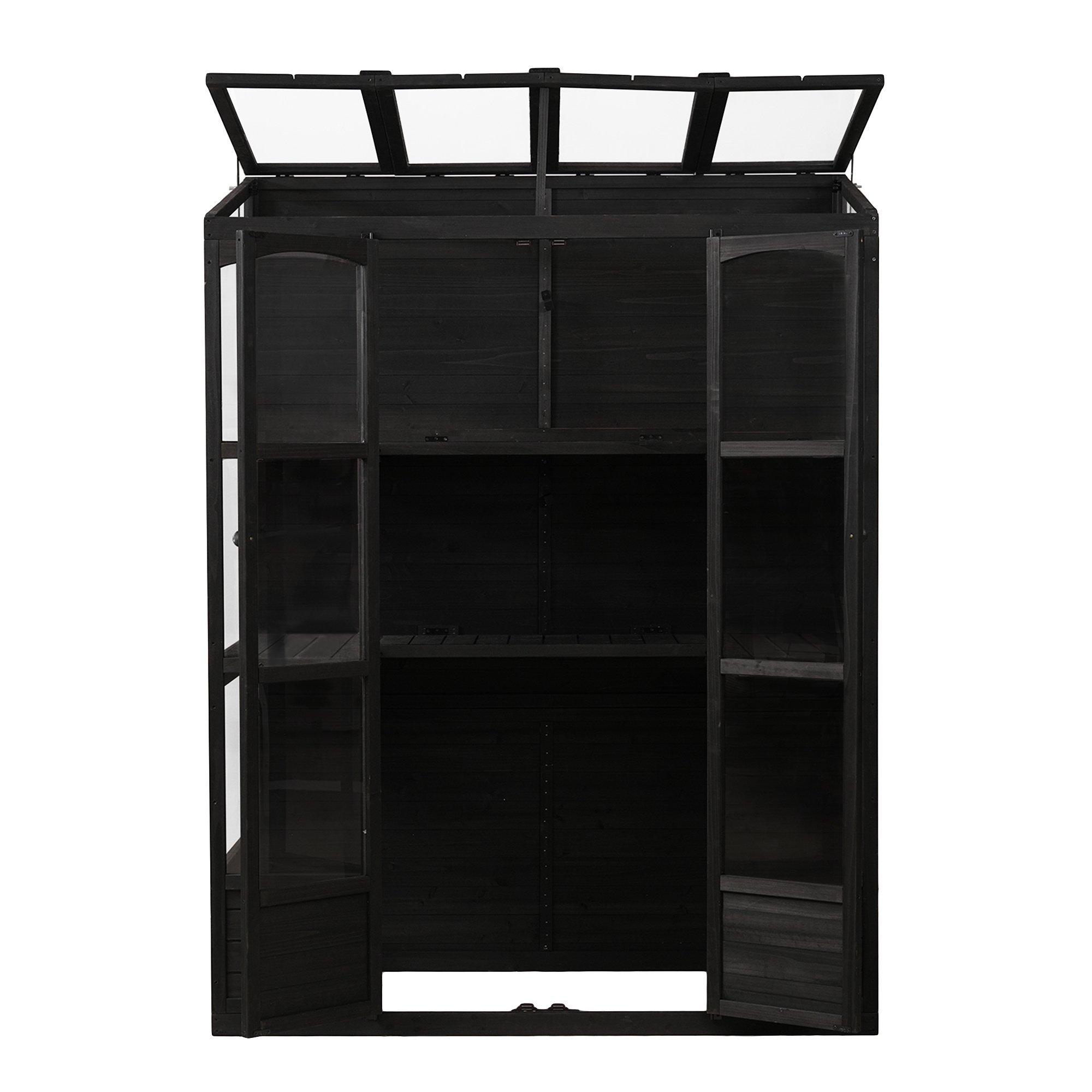 Made from Fir Wood / 2 Folding Middle Shelves / 78-inch Height / Double-sided Door / 4 Skylights / Anti-fall Devices / Walk-in Greenhouse / Two Colors Available