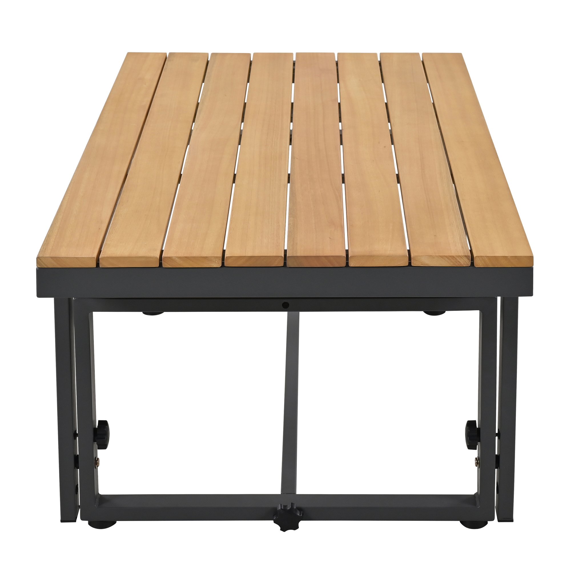 Adjustable-height Design: This set can make you indulge in ultimate comfort with the adjustable-height design of both the sofas and the table. With three levels of the adjustable-height fishbone device, you can transform the sofa seat to the backrest, customizing the seating and several combinations to suit various seating preferences. Additionally, the removable small shelves can be used interchangeably between seats or tucked beneath for convenient storage.