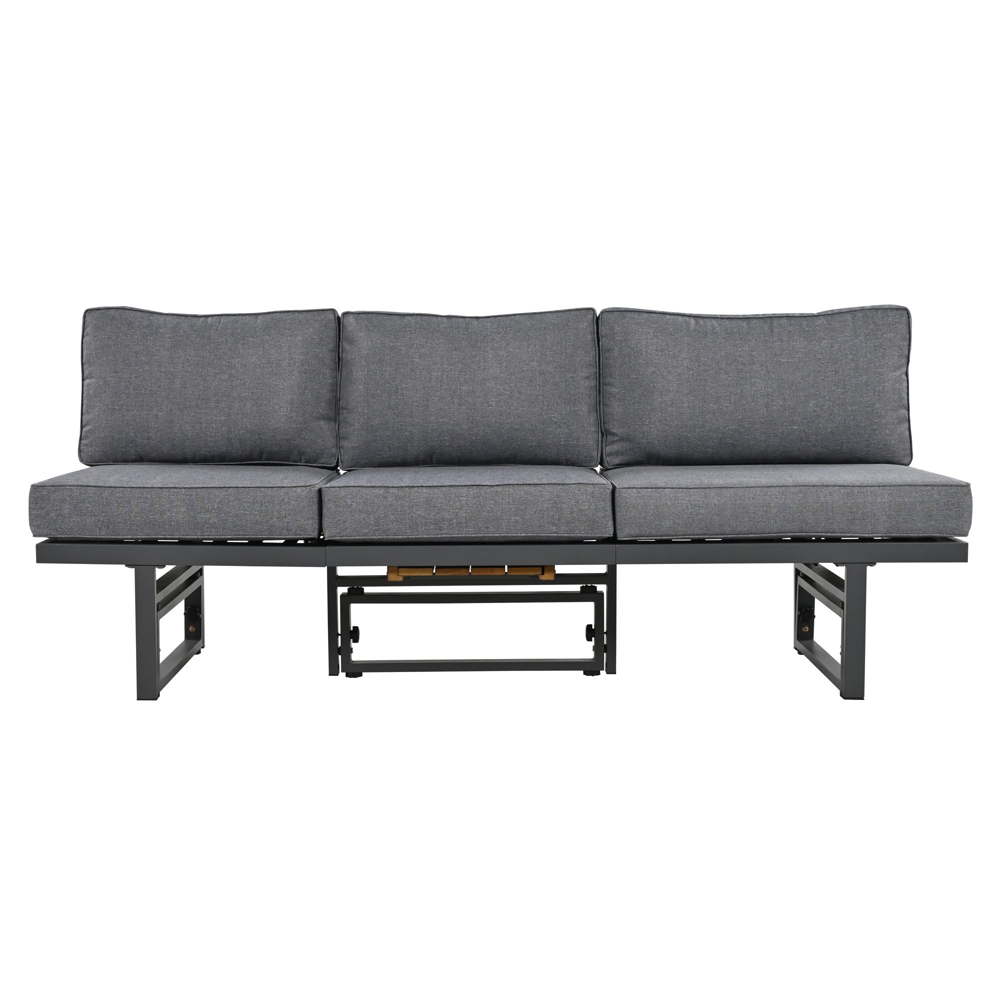 > TREXM 3-Piece Modern Multi-Functional Outdoor Sectional Sofa Set with Height-adjustable Seating and Coffee Table for Patio, Garden and Backyard (Grey)