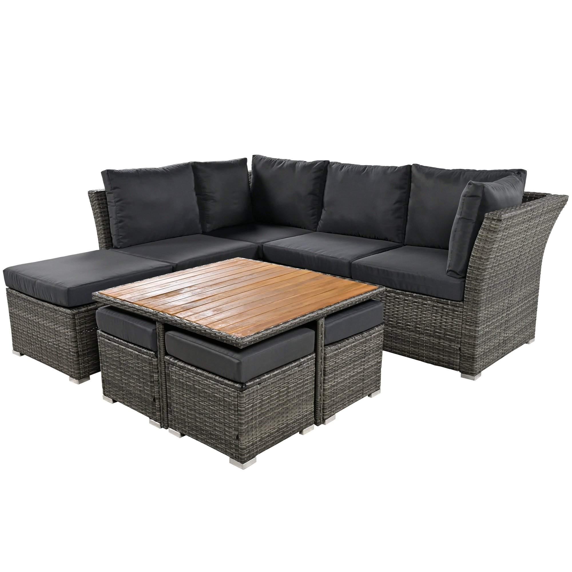 U_STYLE Patio Furniture Set, 10 Piece Outdoor Conversation Set, CoffeeTable with Ottomans, Solid wood coffee table